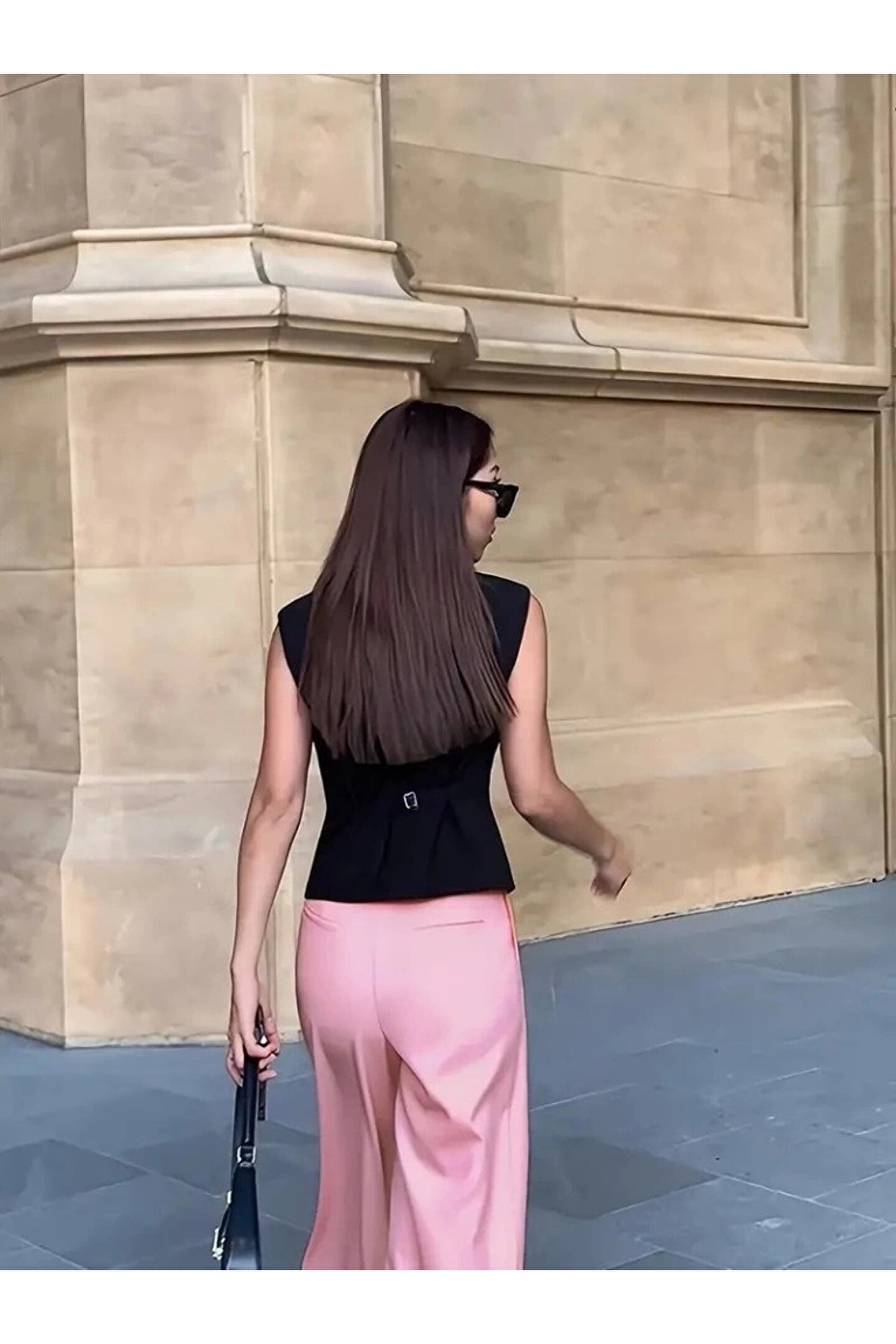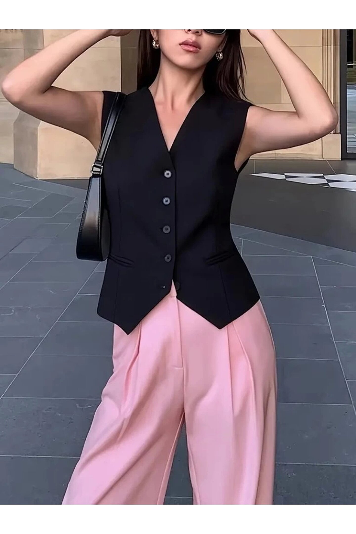 Kadın Sıfır Kollu önden Düğmeli Atlas Yelek