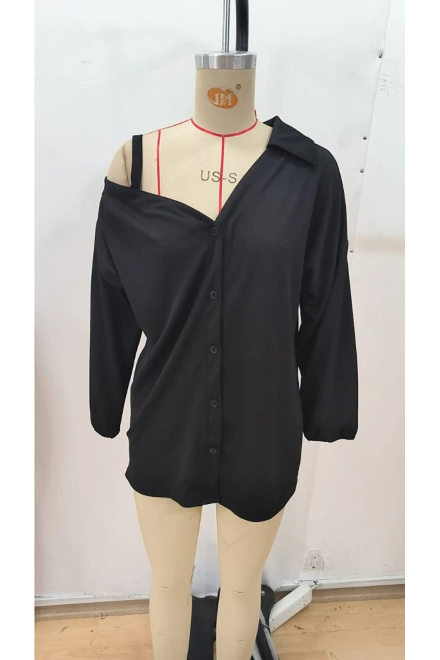 Kadın Tek Omuzdan Açık Askılı Uzun Kollu Yakalı önden Düğmeli Gömlek