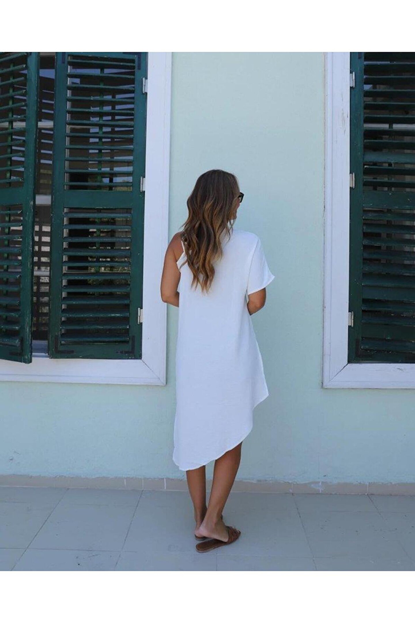 Kadın Tek Omuzu Açık Askılı Asimetrik Kesim Detaylı Bluz
