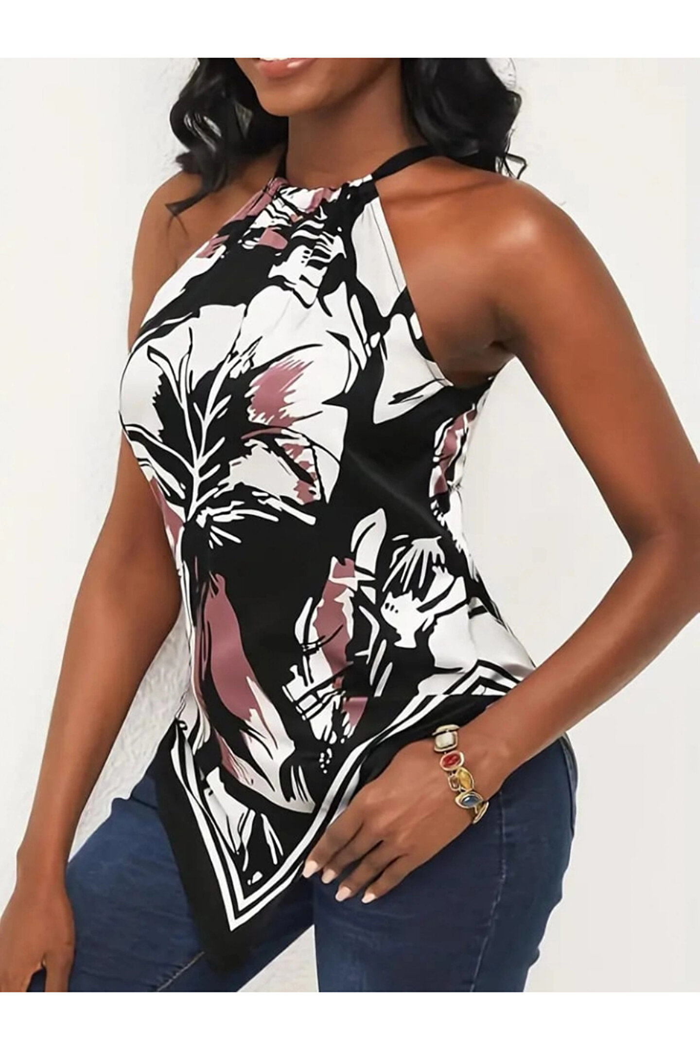 Kadın üçgen Kesim Boyundan Bağlamalı çiçek Desen Süprem Bluz