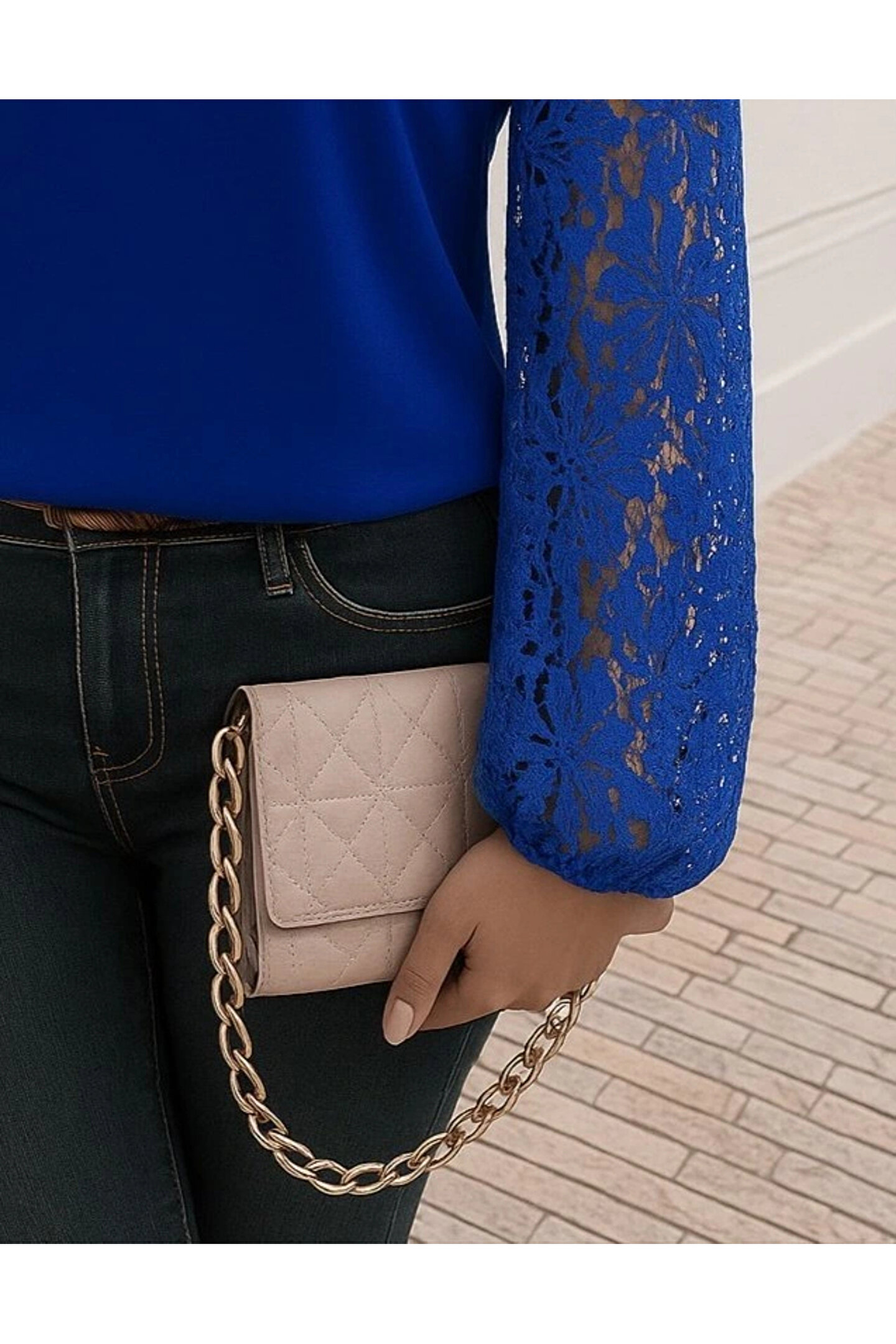 Kadın Uzun Kollu Asimetrik Yakalı Dantelli Ithal Krep Bluz