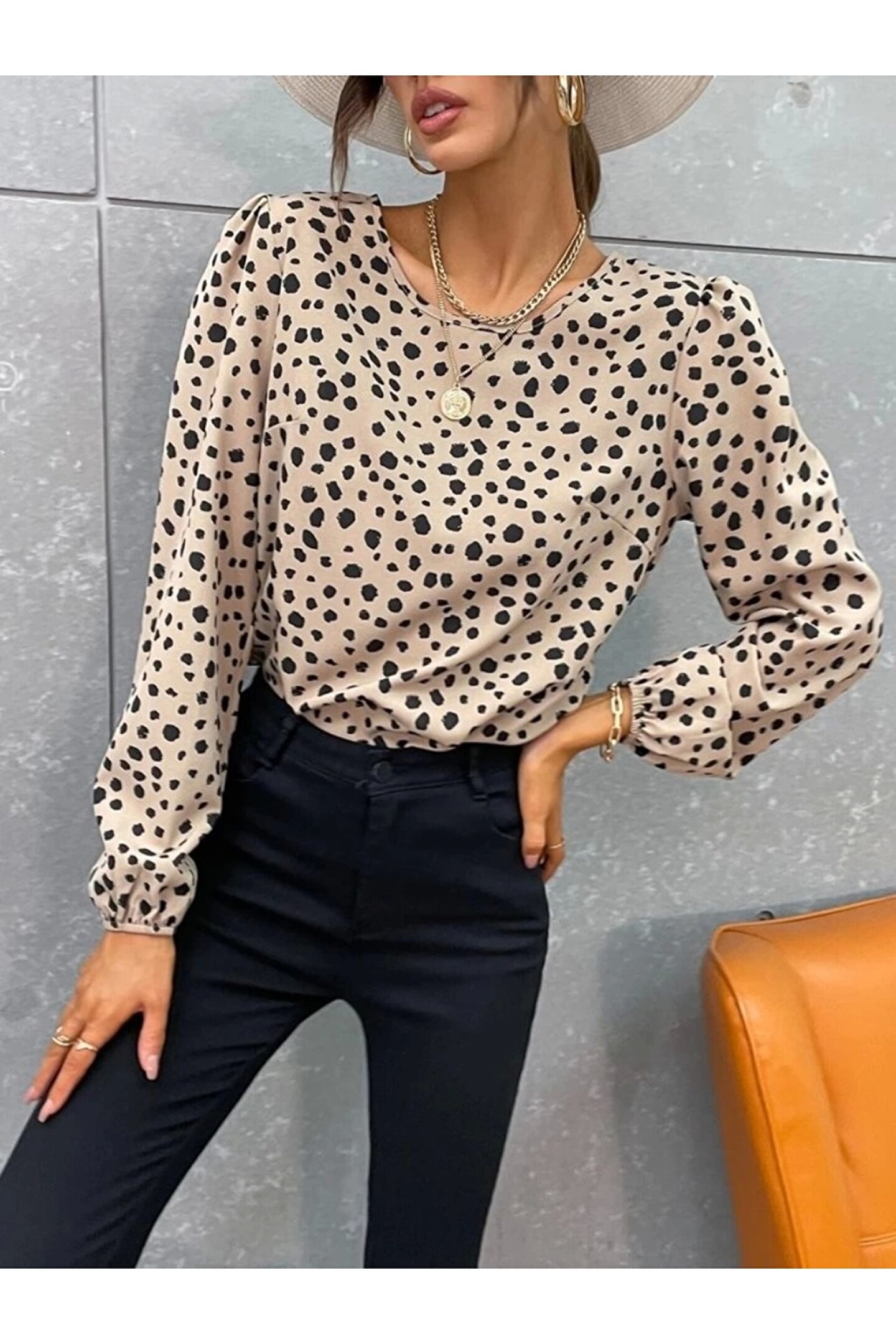 Kadın Uzun Kollu Bisiklet Yaka Desenli Bluz