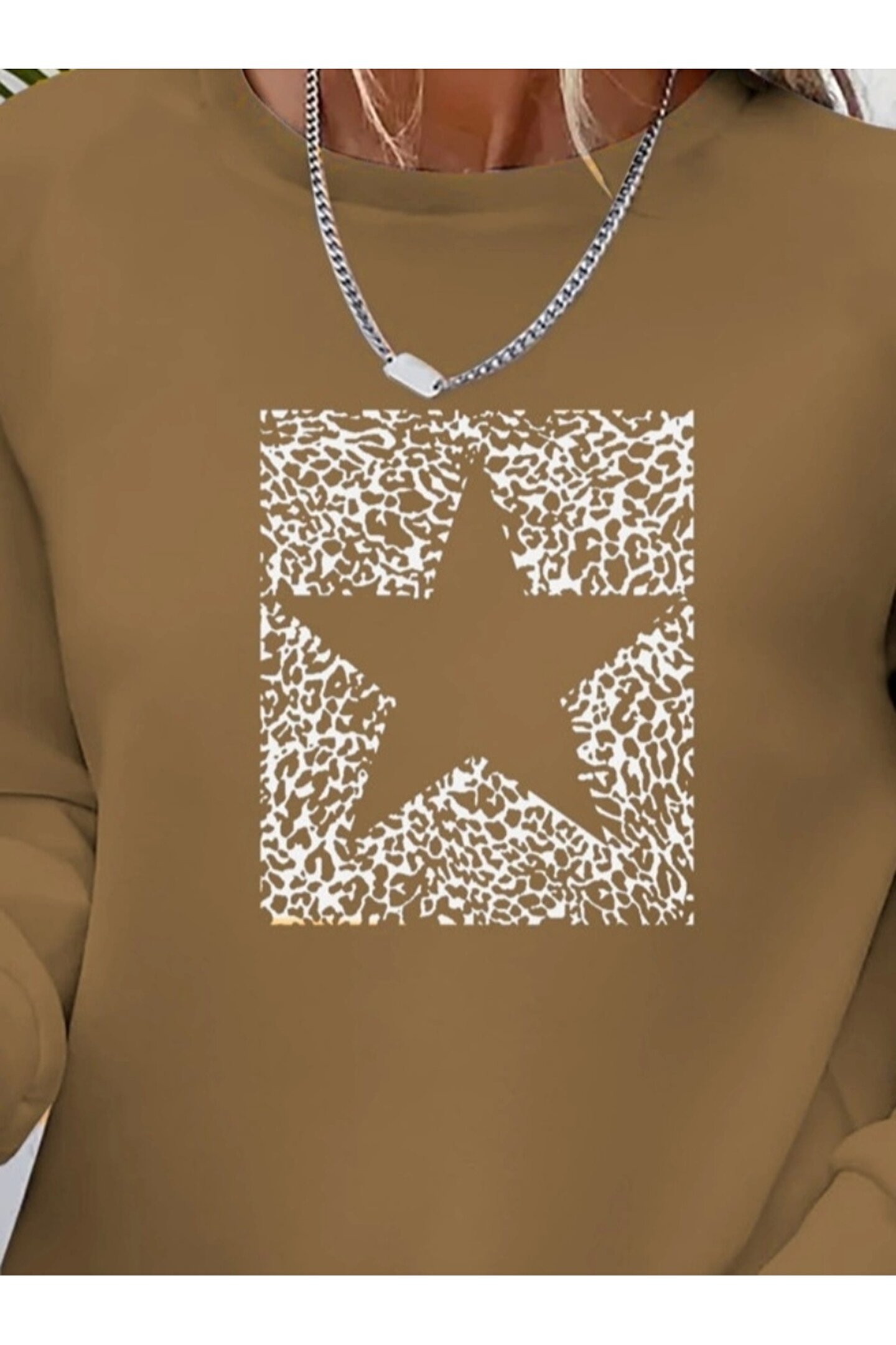 Kadın Uzun Kollu Bisiklet Yaka Desenli Viskon Iki Iplik Bluz