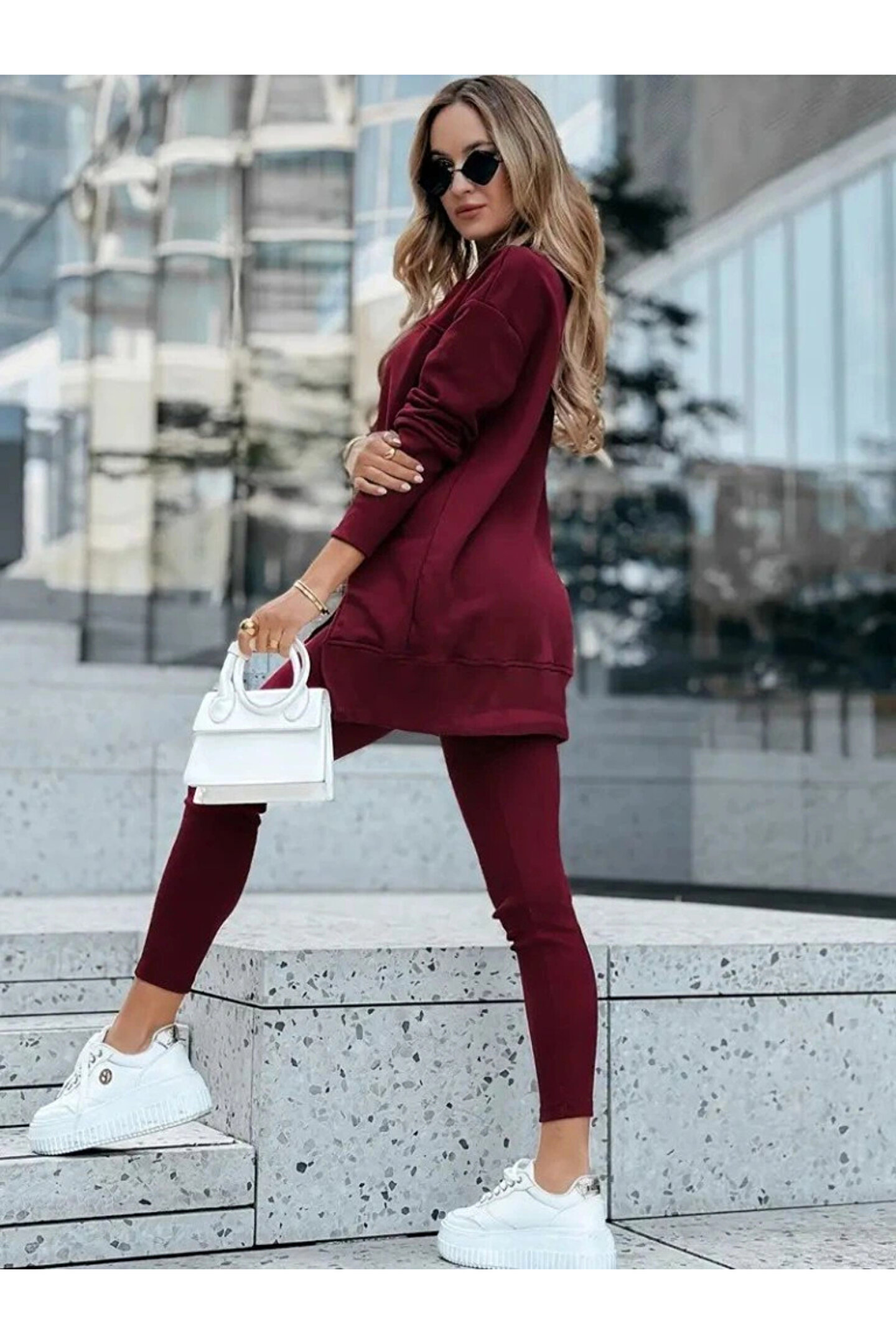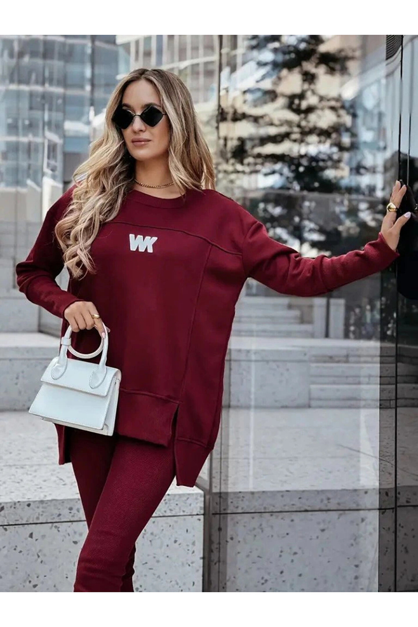 Kadın Uzun Kollu Bisiklet Yaka Nervurlu Viskon Iki Iplik Ve Tayt Pantolon Ikili Takım