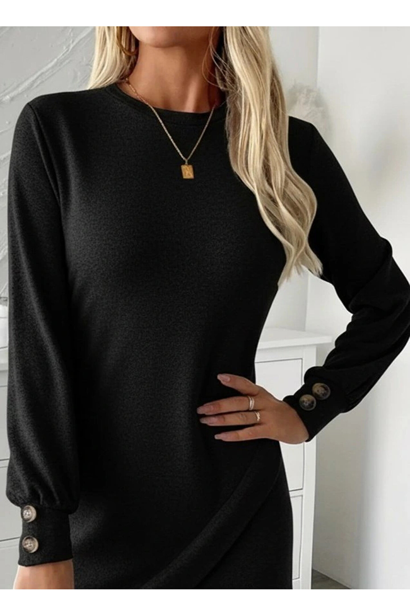 Kadın Uzun Kollu Bisiklet Yaka önden Asimetrik Kesim Detaylı Mini Yumoş Elbise