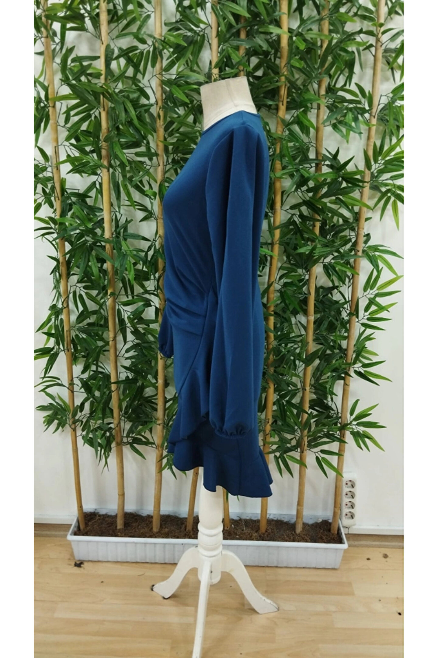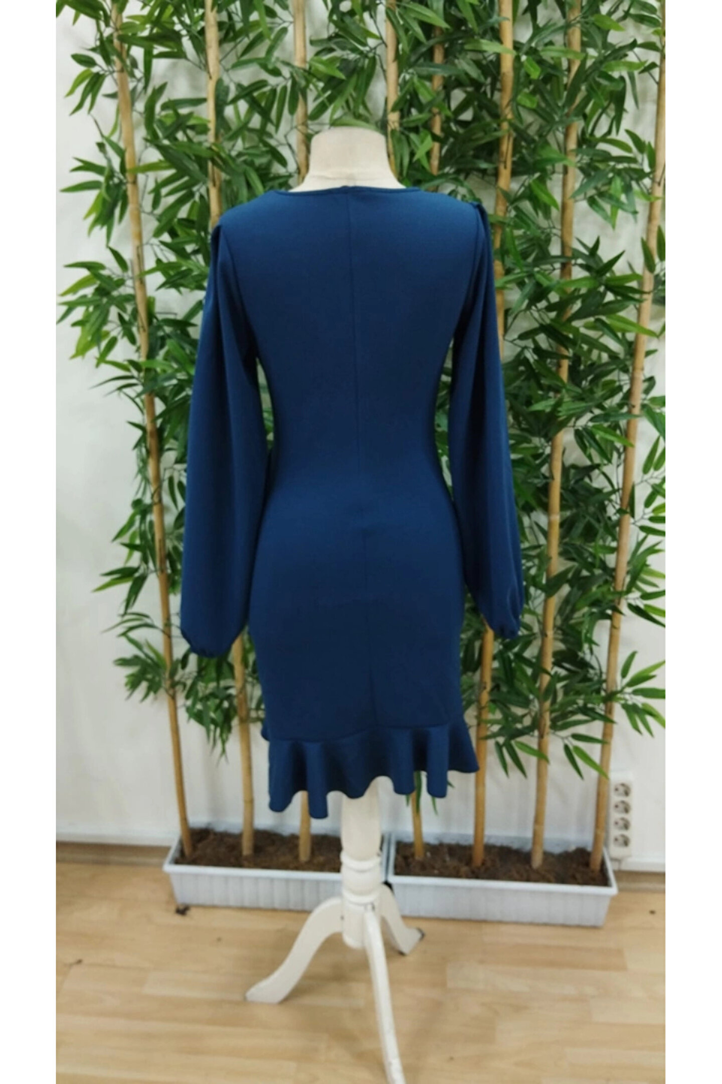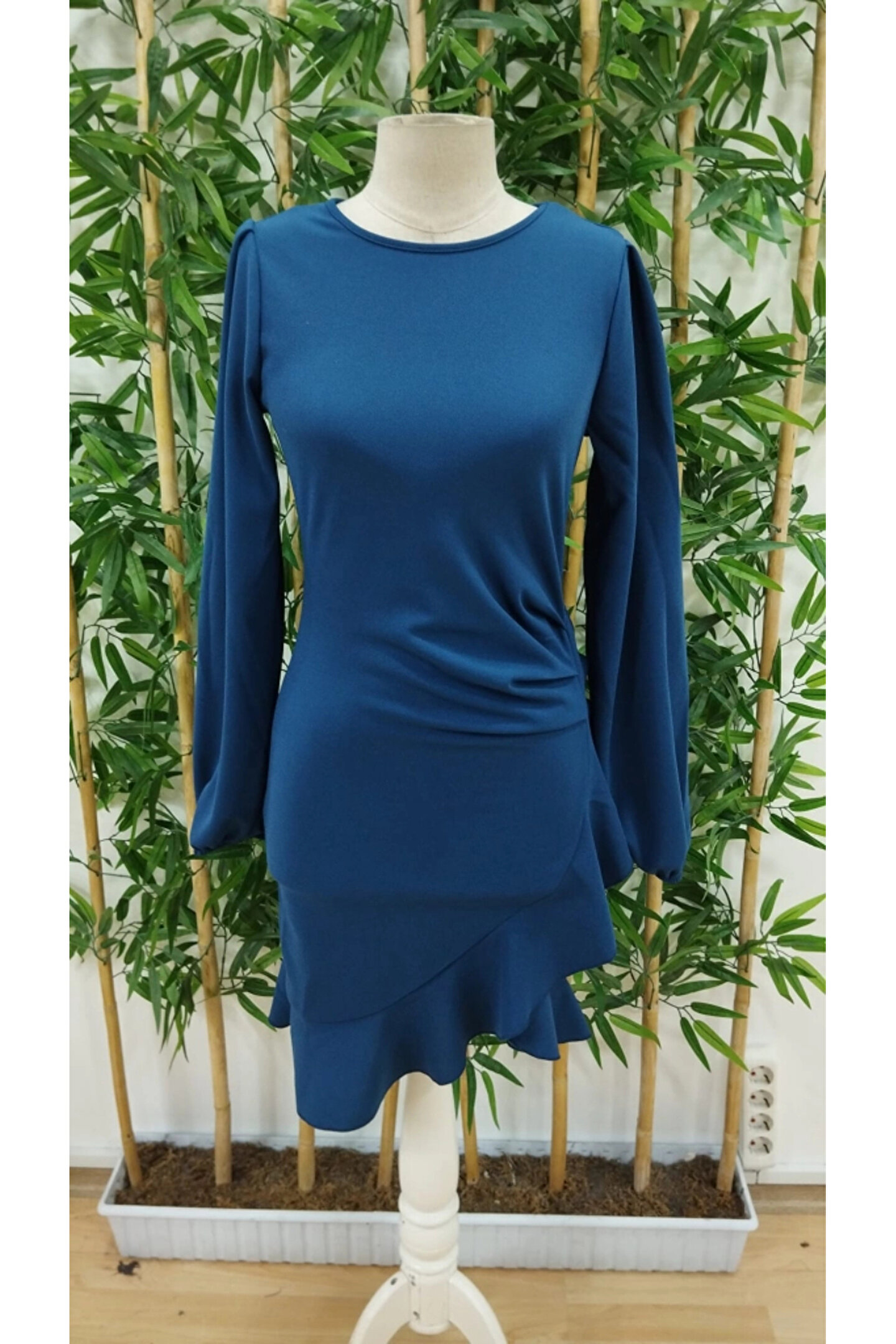 Kadın Uzun Kollu Bisiklet Yaka önden Volanlı Ithal Krep Elbise
