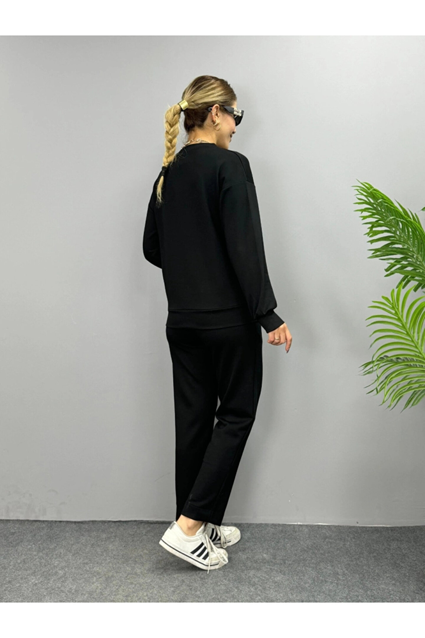 Kadın Uzun Kollu Bisiklet Yaka Viskon Iki Iplik Bluz Ve Pantolon Ikili Takım