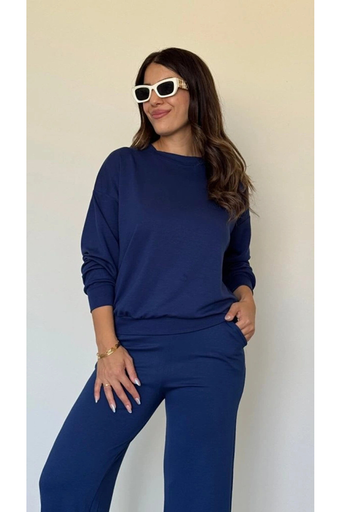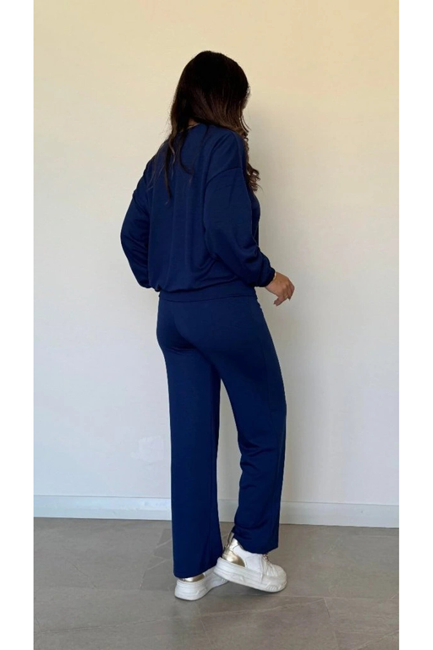 Kadın Uzun Kollu Bisiklet Yaka Viskon Iki Iplik Bluz Ve Pantolon Ikili Takım
