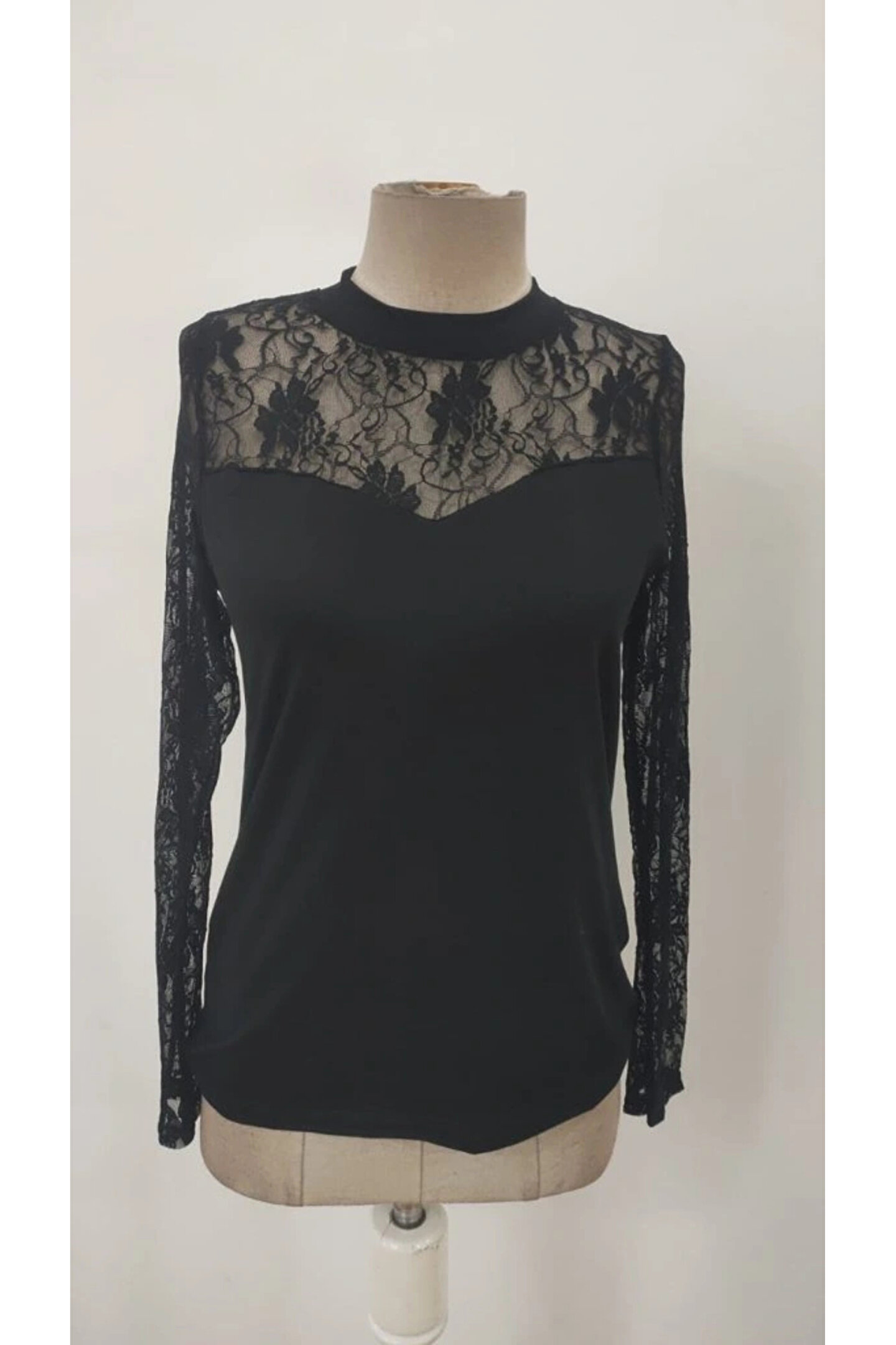 Kadın Uzun Kollu Dantel Detaylı Viskon Bluz