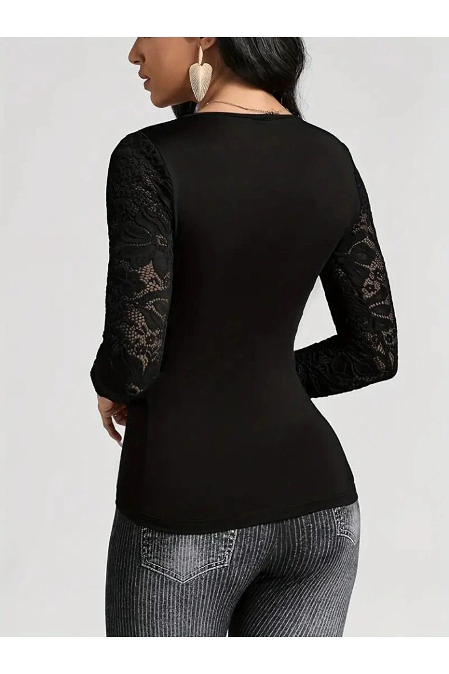 Kadın Uzun Kollu Dantelli Kruvaze Yakalı Yandan Büzgülü Viskon Bluz