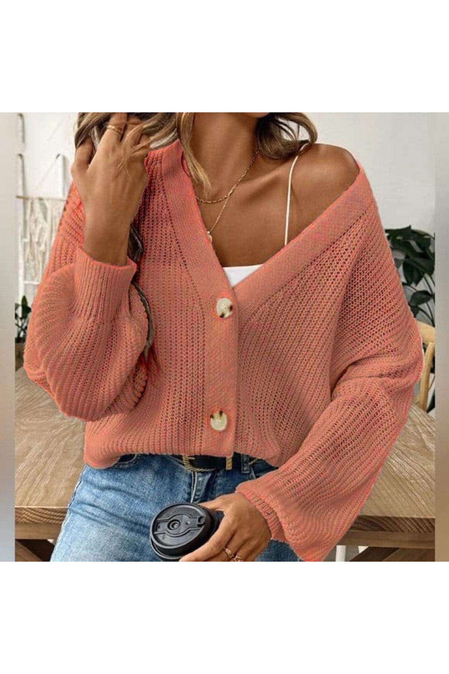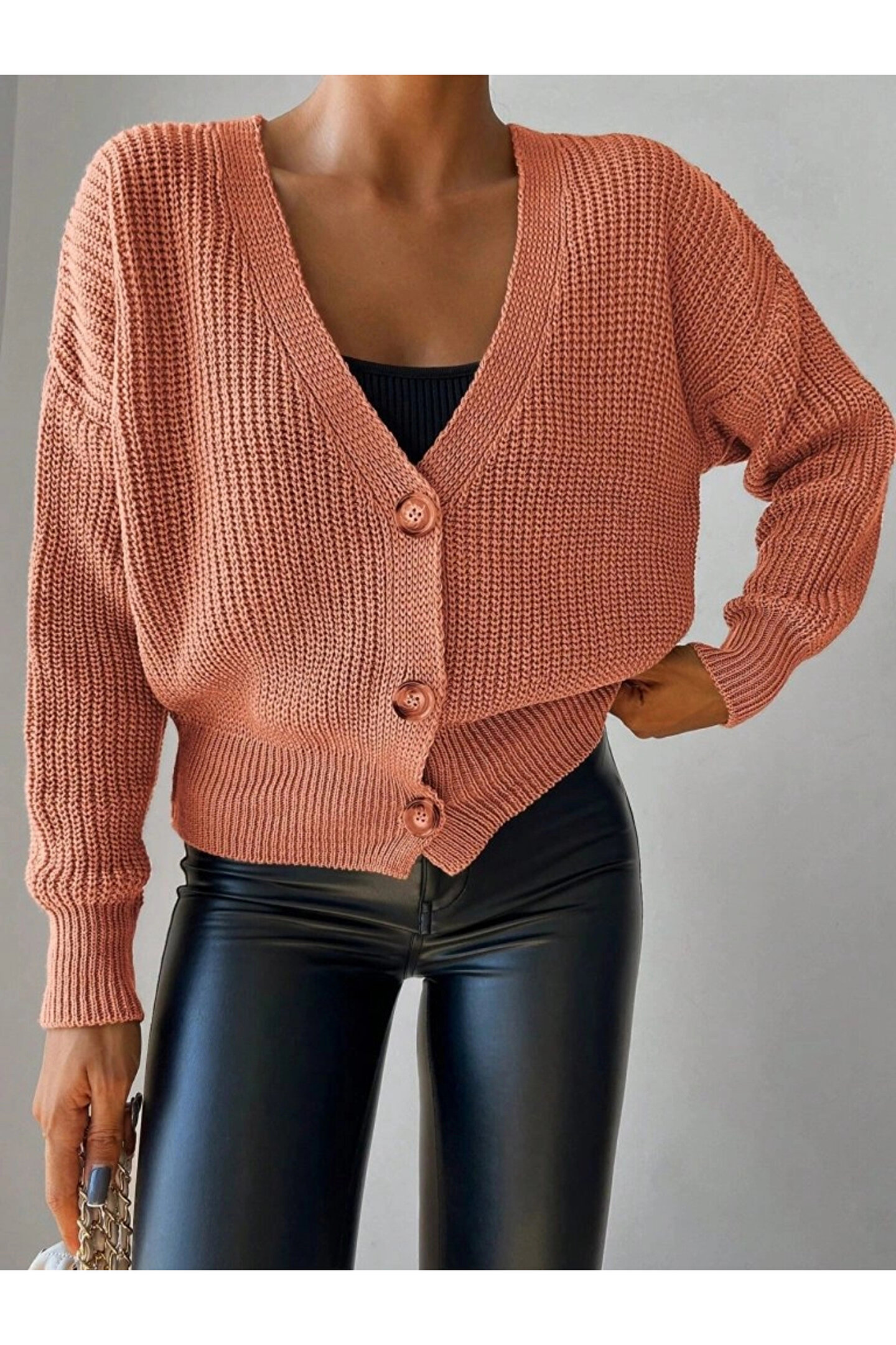 Kadın Uzun Kollu Düğme Detay Triko Bluz