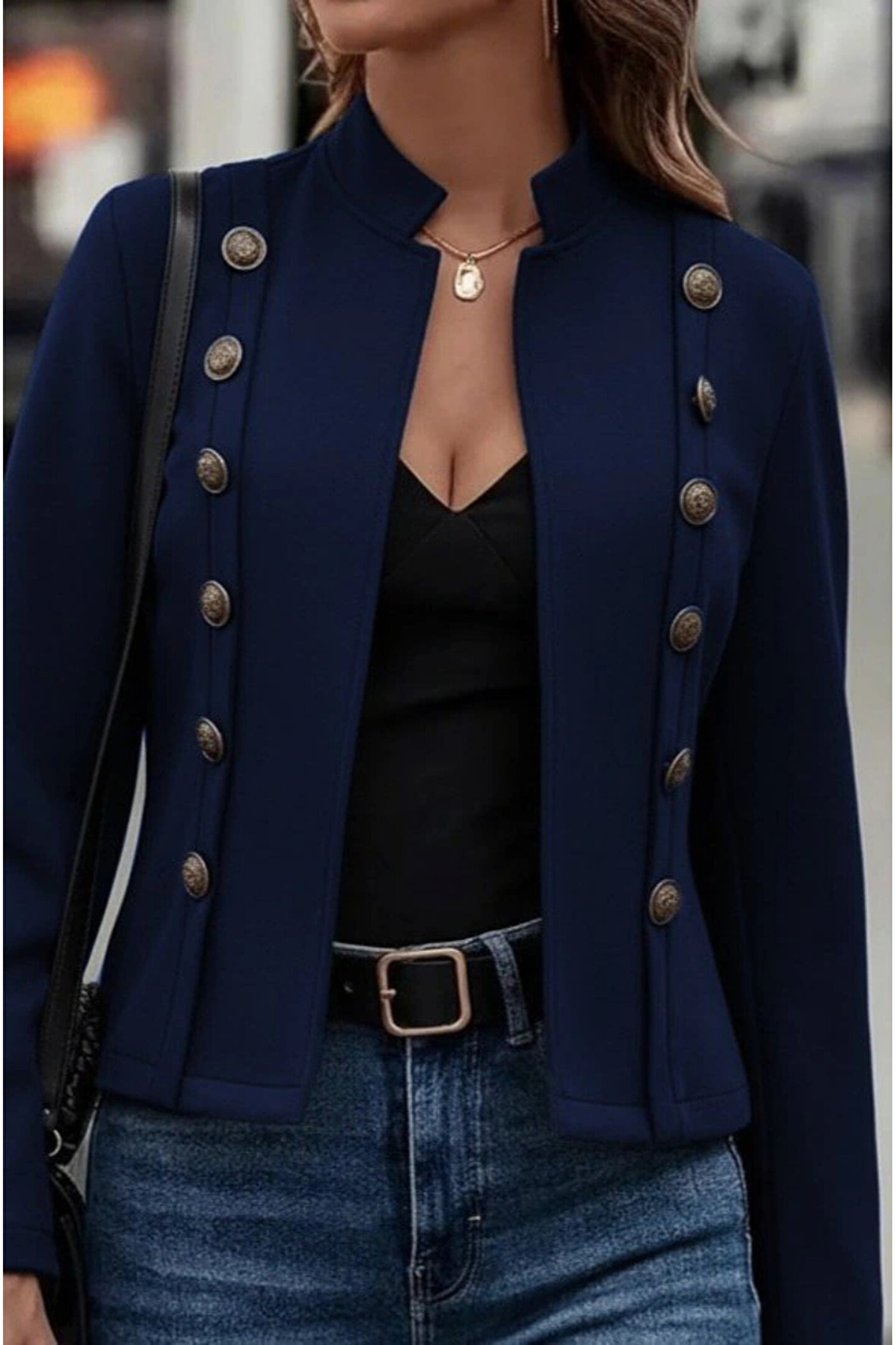Kadın Uzun Kollu Hakim Yaka Yanlardan Düğmeli Kısa Süet Ceket