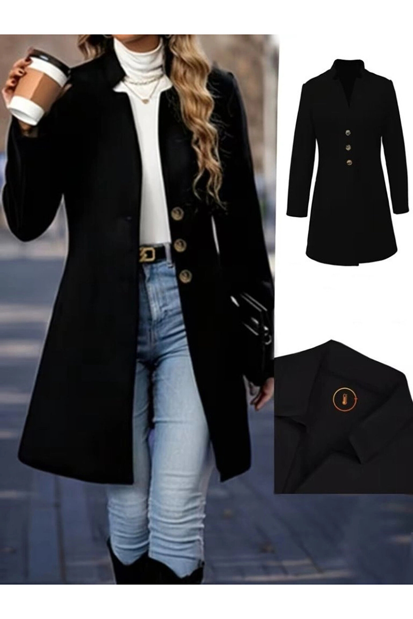 Kadın Uzun Kollu Hakim Yakalı önden Düğmeli Ithal Kaşe Astarsız Kısa Kaban