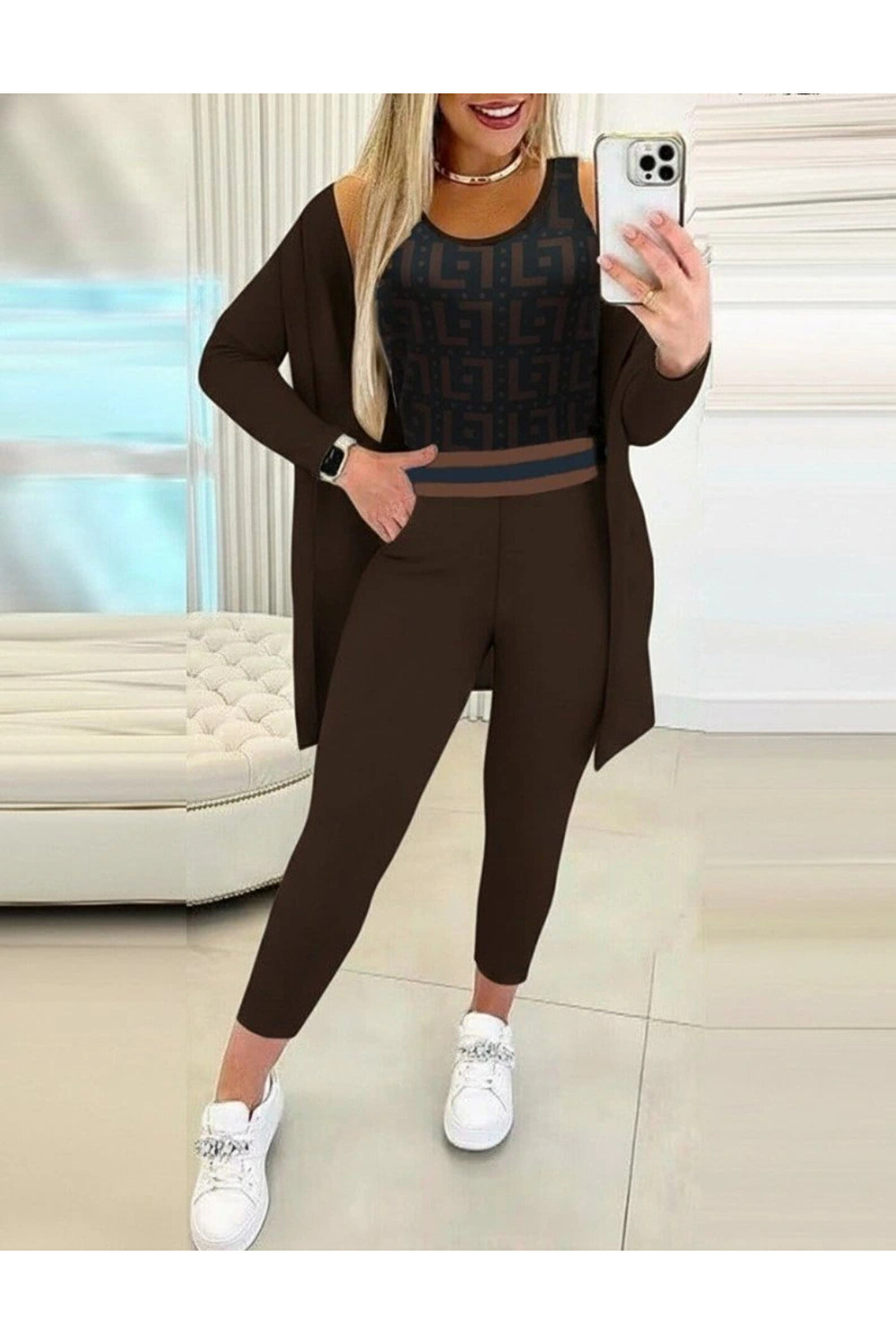 Kadın Uzun Kollu Krep üçlü Takım