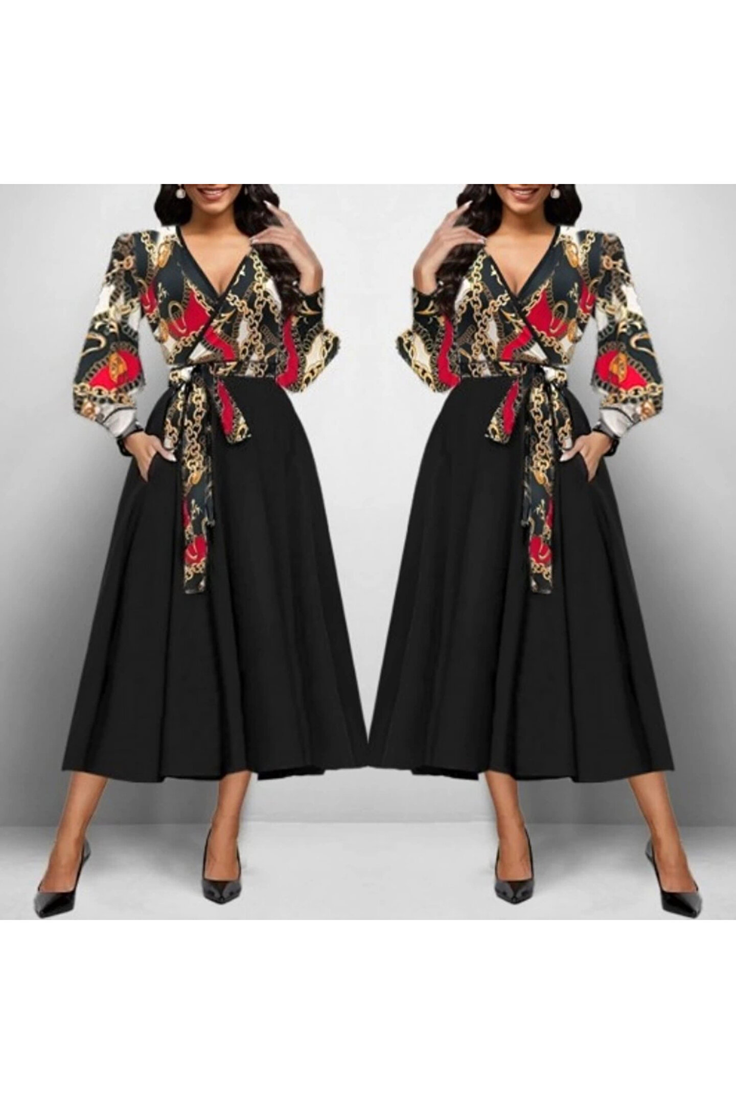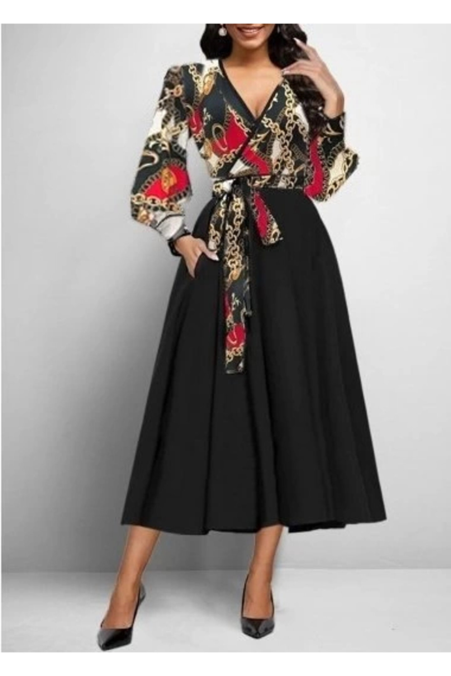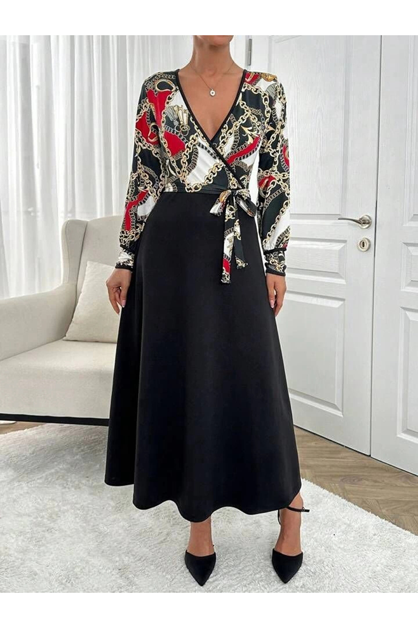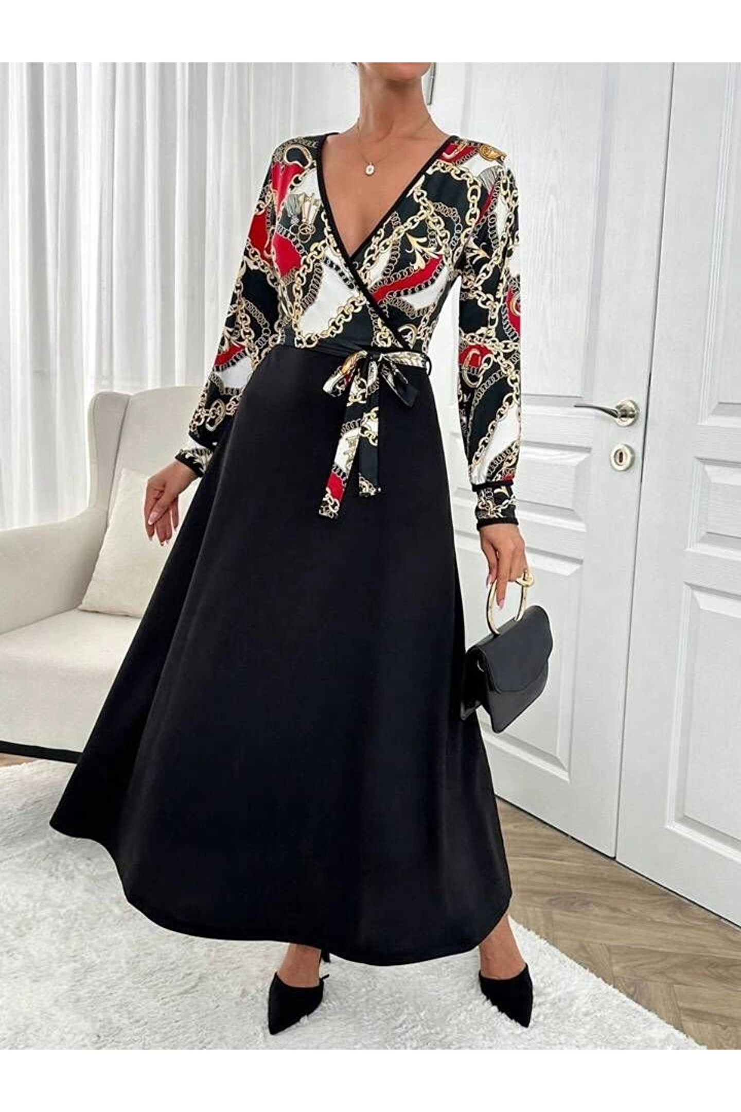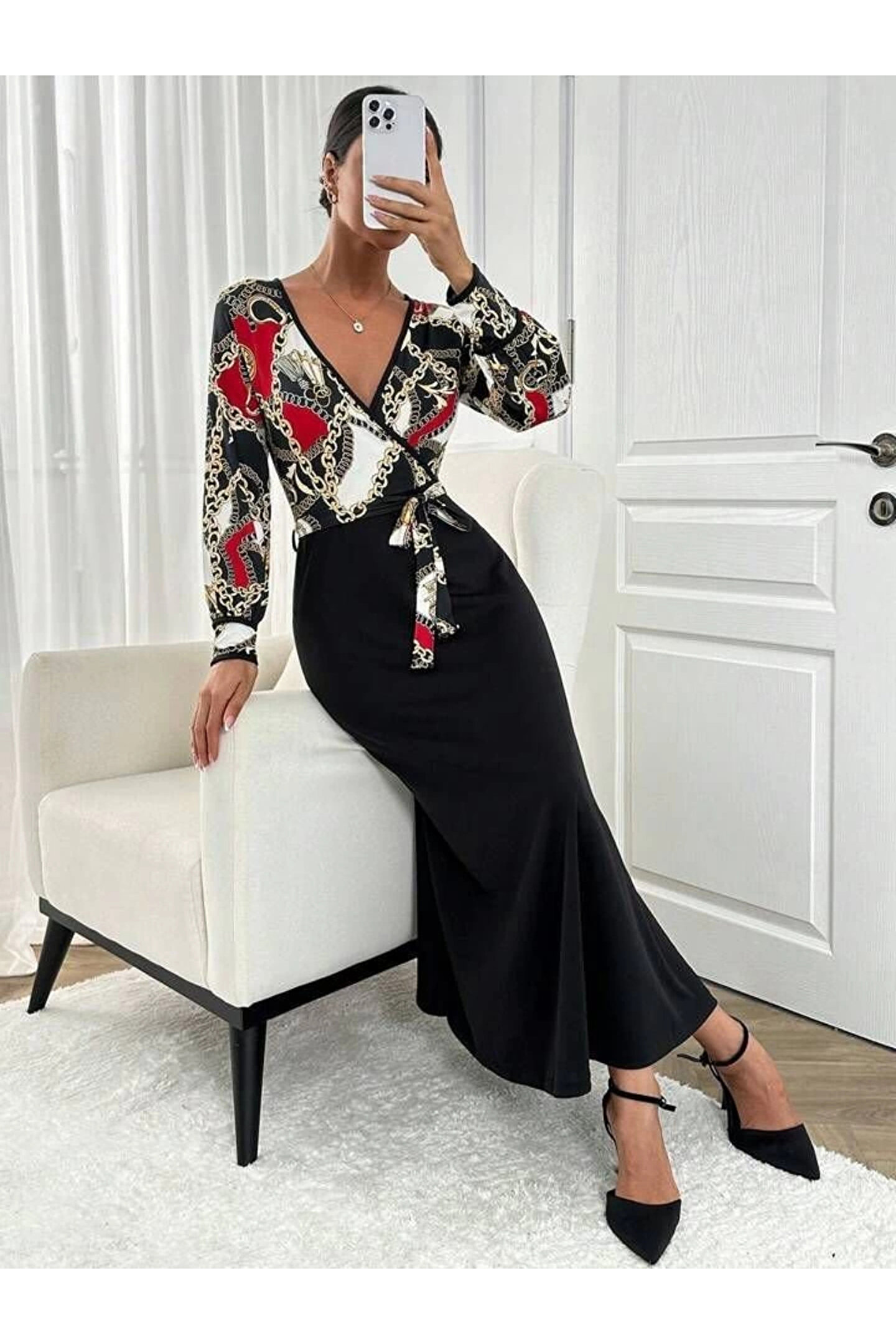 Kadın Uzun Kollu Kruvaze Yaka Dalgıç Krep Midi Boy Elbise