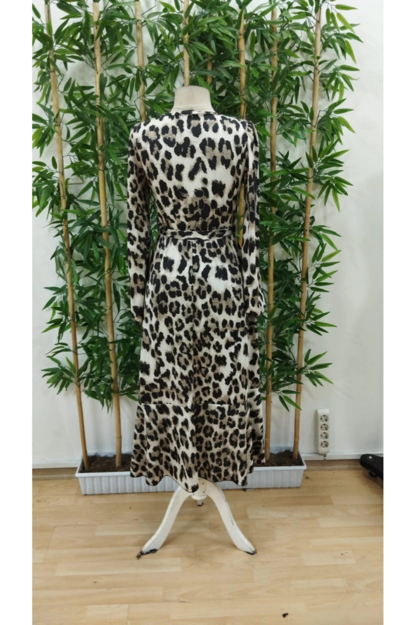 Silerra Kadın Uzun Kollu Kruvaze Yakalı Belden Kuşaklı Leopar