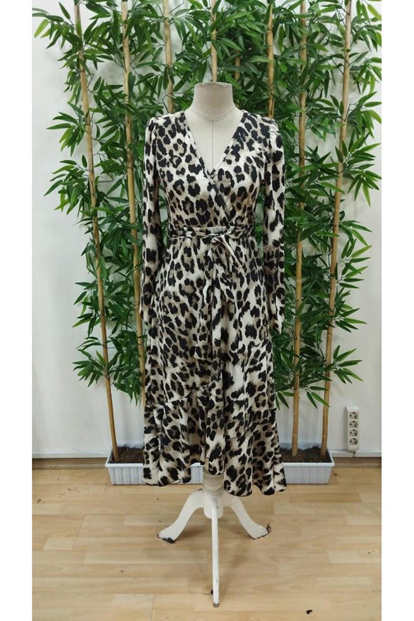 Silerra Kadın Uzun Kollu Kruvaze Yakalı Belden Kuşaklı Leopar