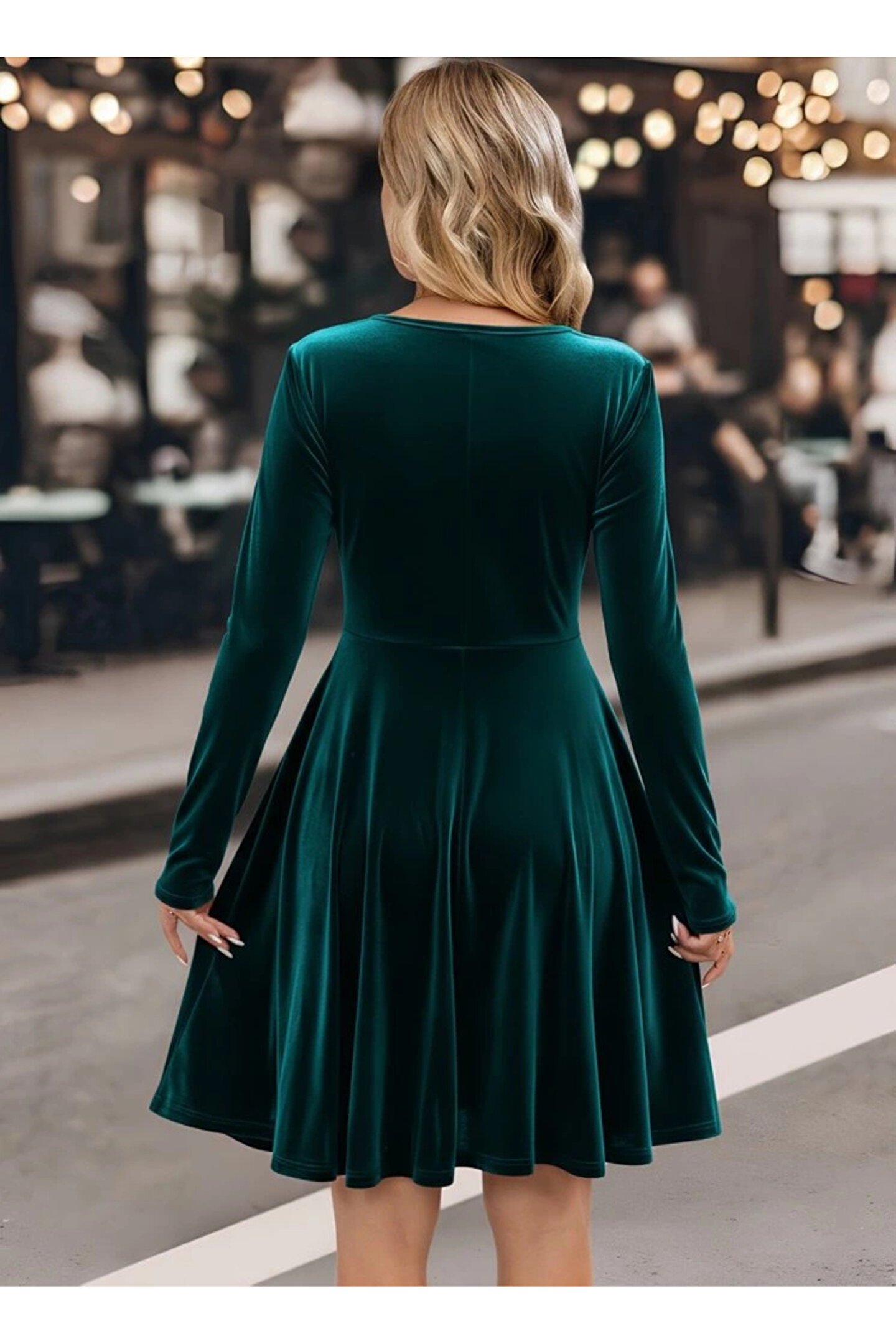 Kadın Uzun Kollu Kruvaze Yakalı Toka Detaylı Mini Kadife Elbise