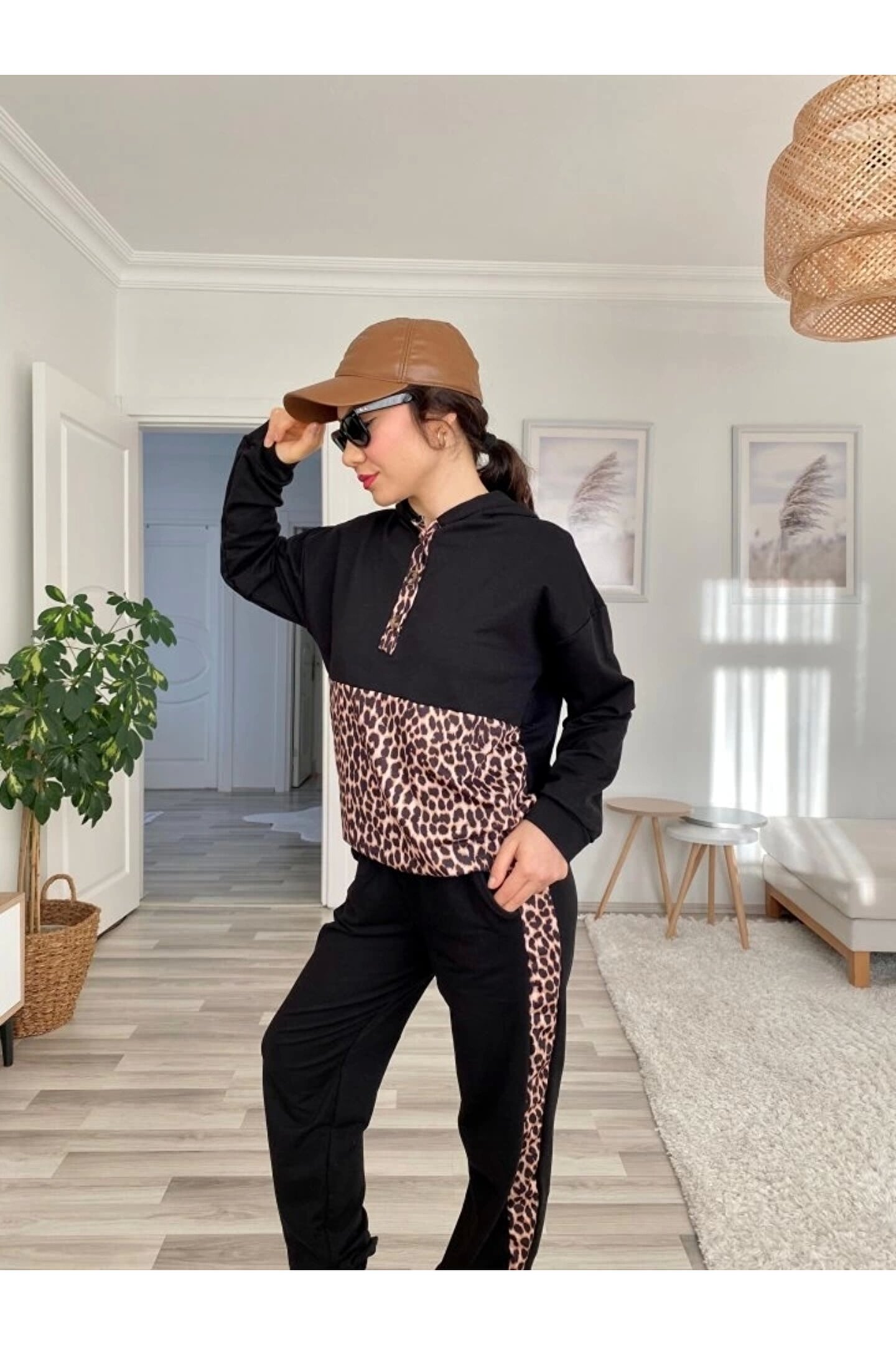 Kadın Uzun Kollu Leopar Detay Sweat Ve Yanı Leopar şerit Detay Pantolon Ikili Takım Modelin Ölçüleri: Boy:165, Kg:55, Göğüs:90, Bel:72, Kalça: 100 Modelin üzerindeki ürün M/38 bedendir KOL UZUNLUK-Uzun Kol TAKIM OZELLIK-Pantolonlu Takım EK OZELLIKLER-Boş/Ek özellik Yok