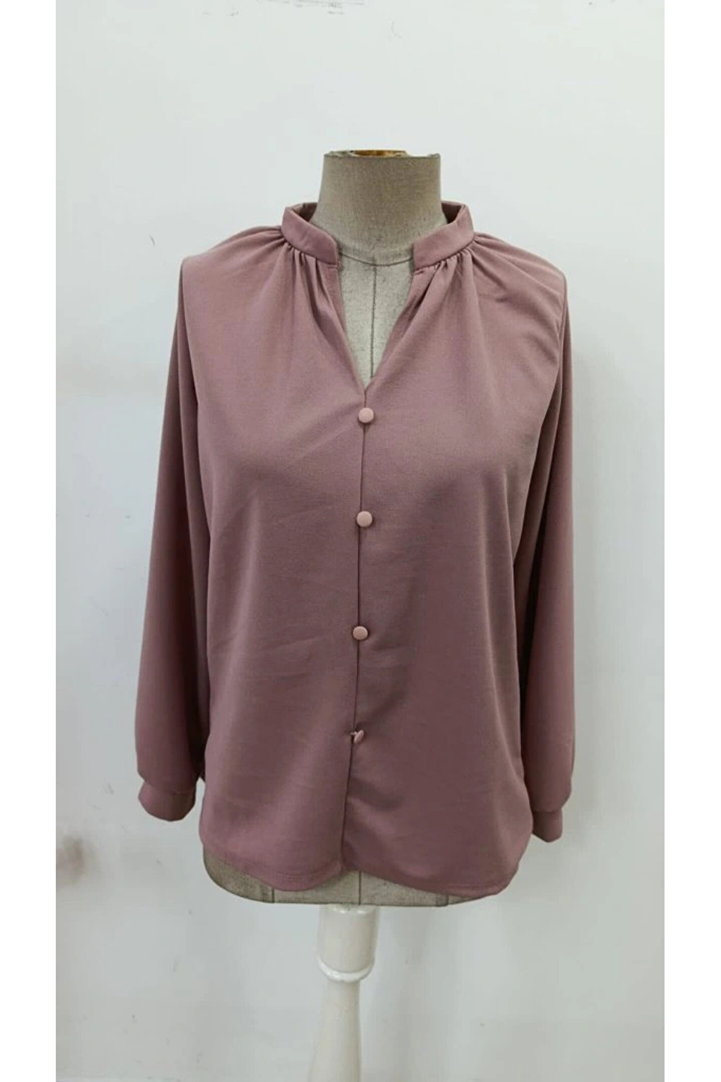 Kadın Uzun Kollu önden Düğmeli Hakim Yaka Ithal Krep Bluz