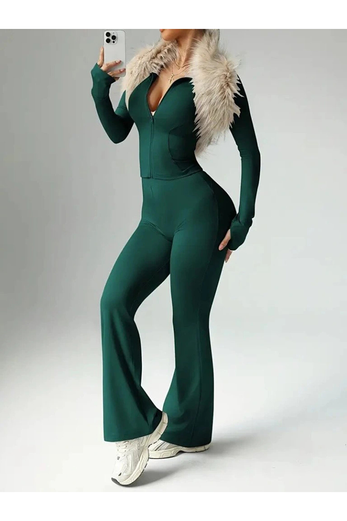 Kadın Uzun Kollu önden Fermuarlı Kısa Dalgıç Bluz Ve Pantolon Ikili Takım