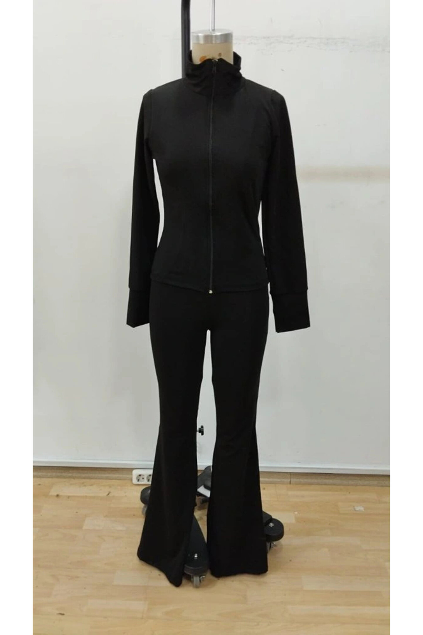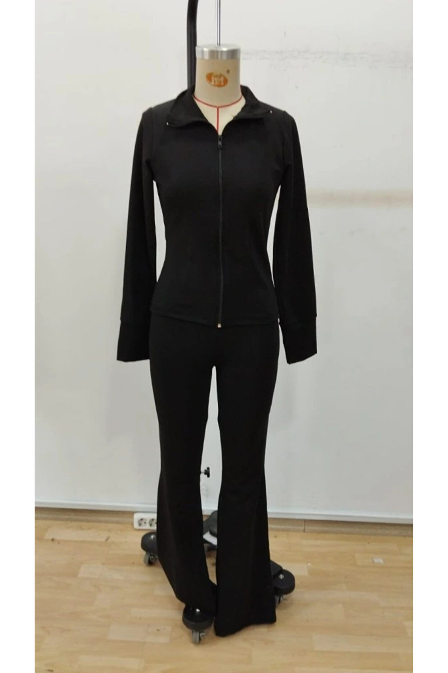 Kadın Uzun Kollu önden Fermuarlı Kısa Dalgıç Bluz Ve Pantolon Ikili Takım