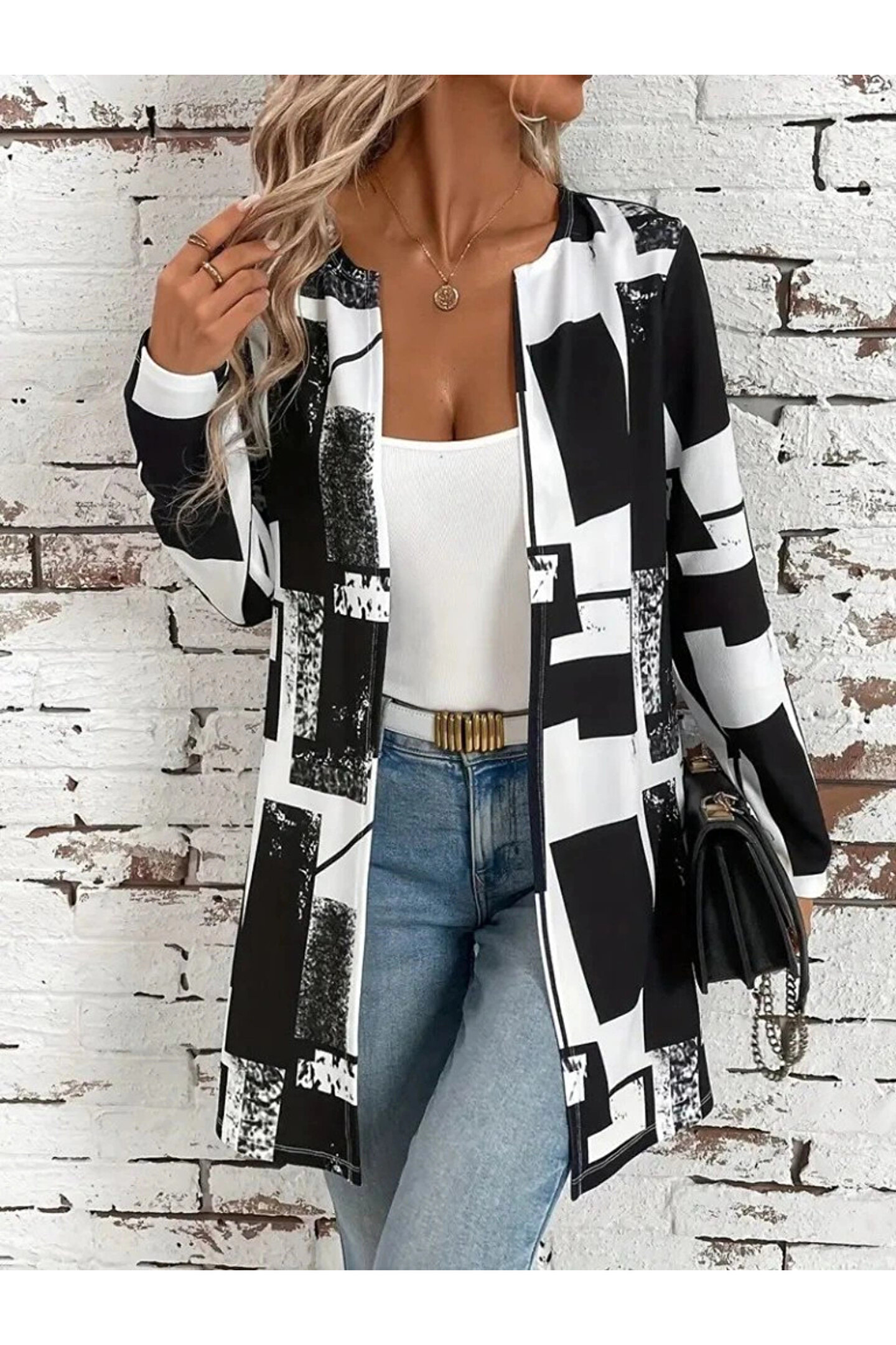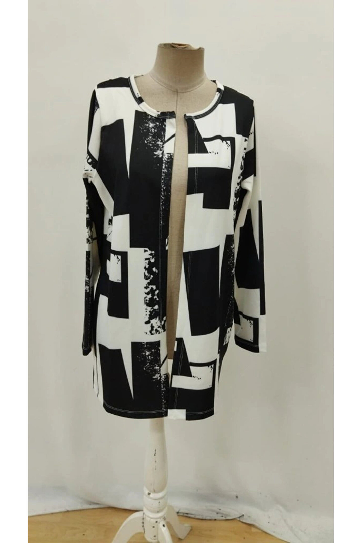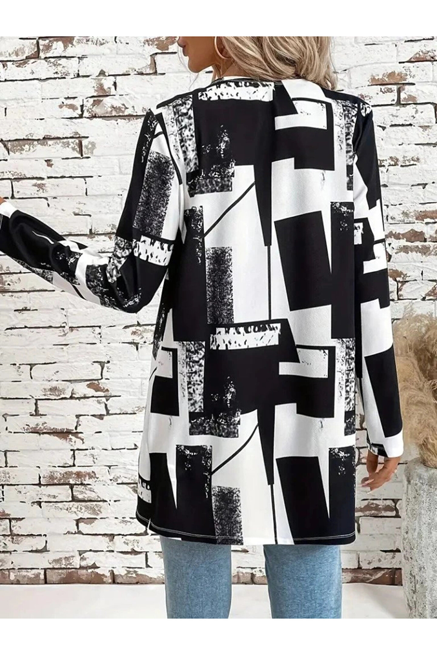 Kadın Uzun Kollu önü Açık Desenli Modal Kısa Ceket