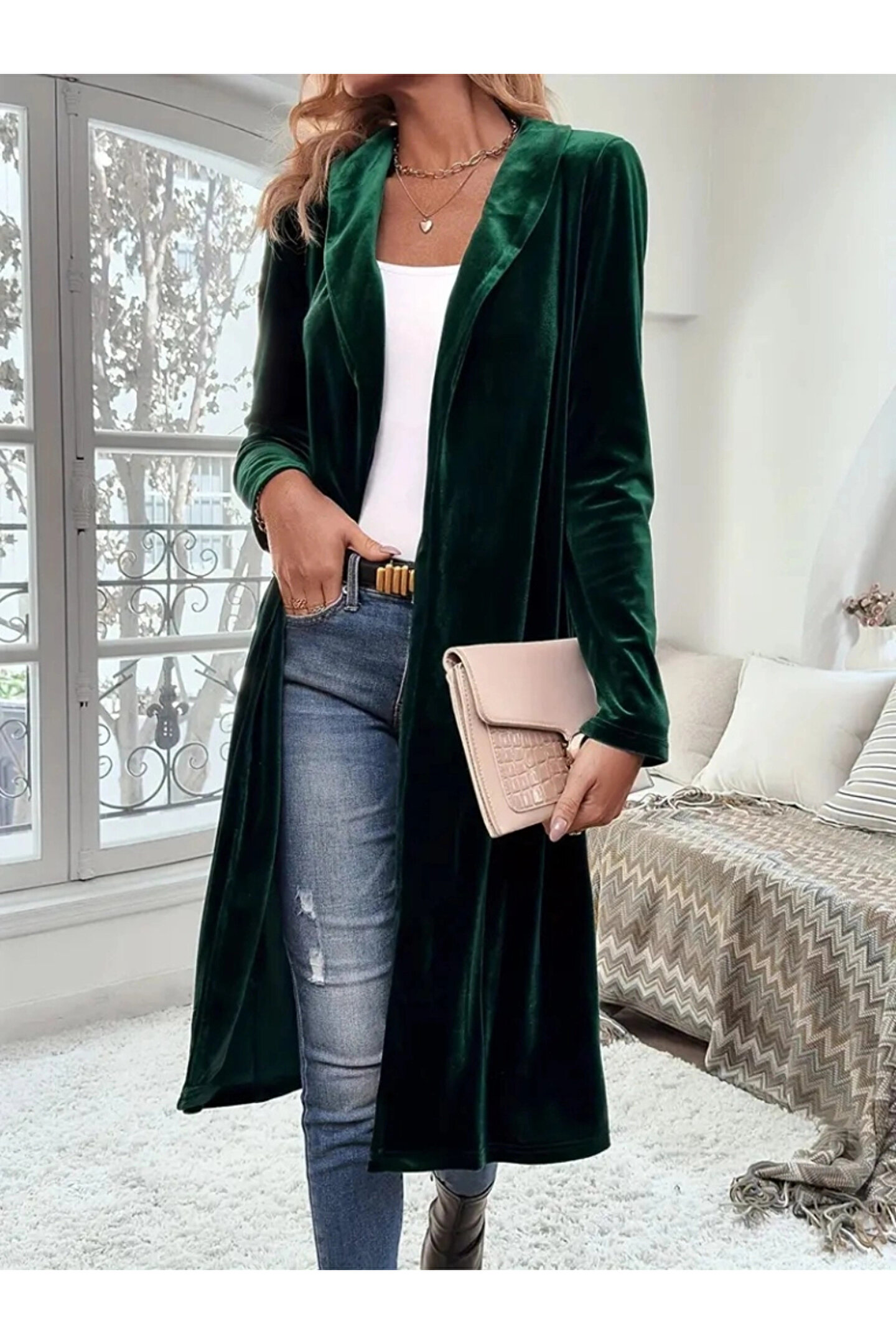 Kadın Uzun Kollu önü Açık Kolları Uzun Midi Ceket