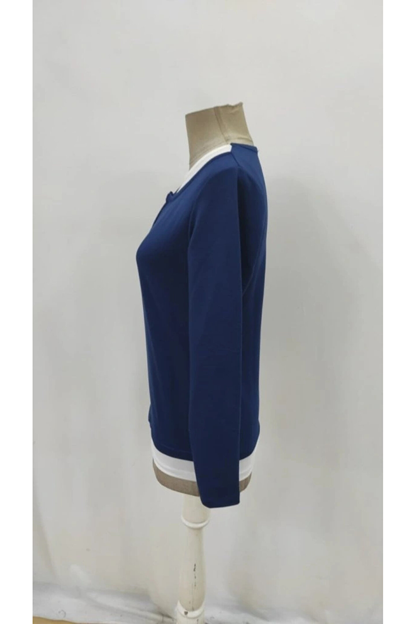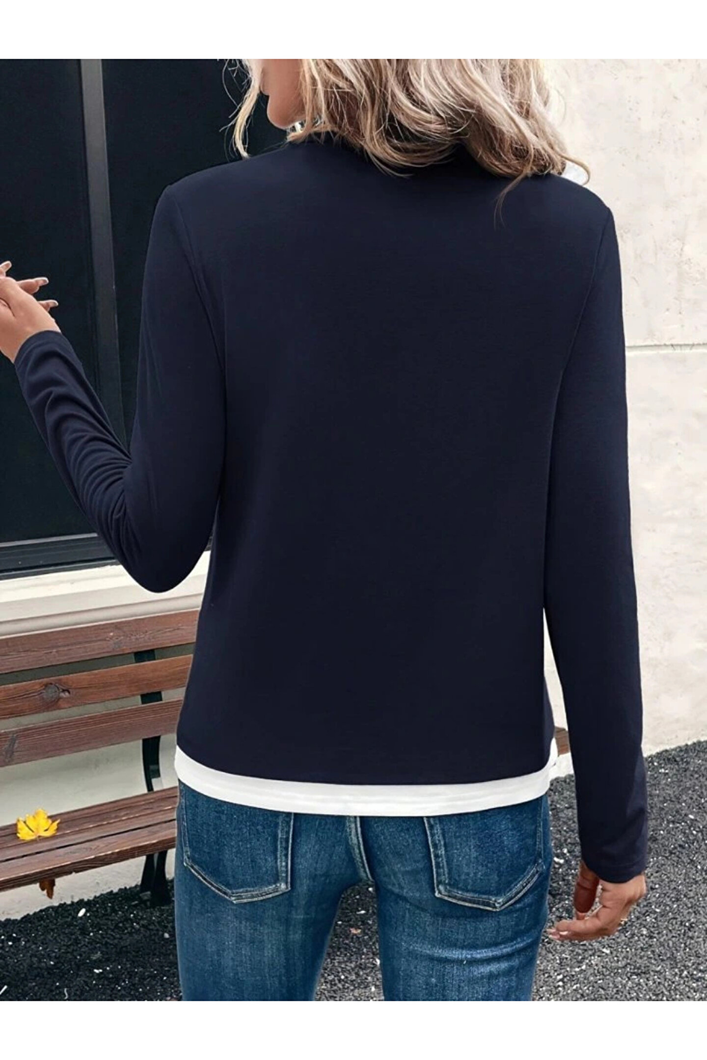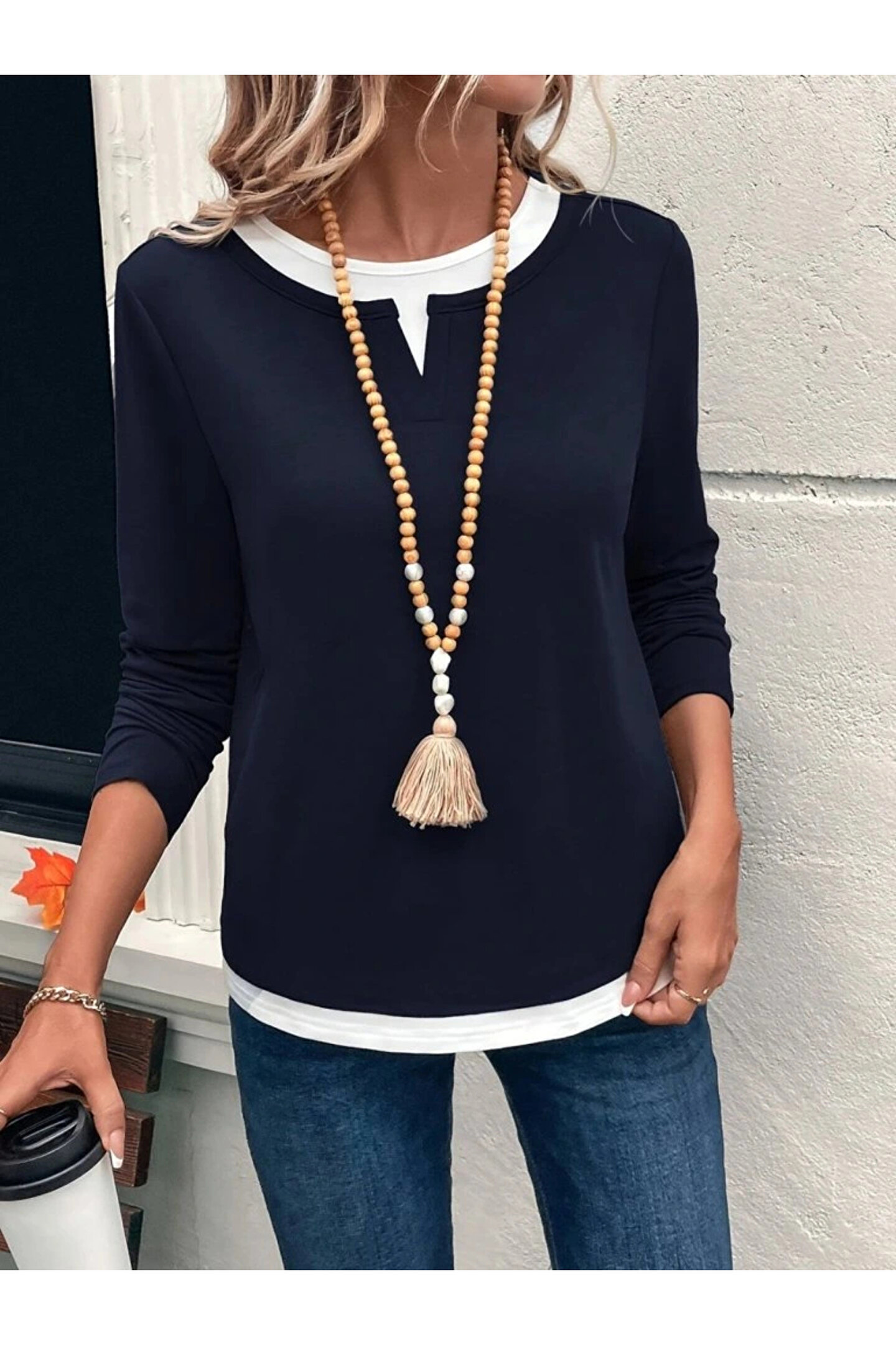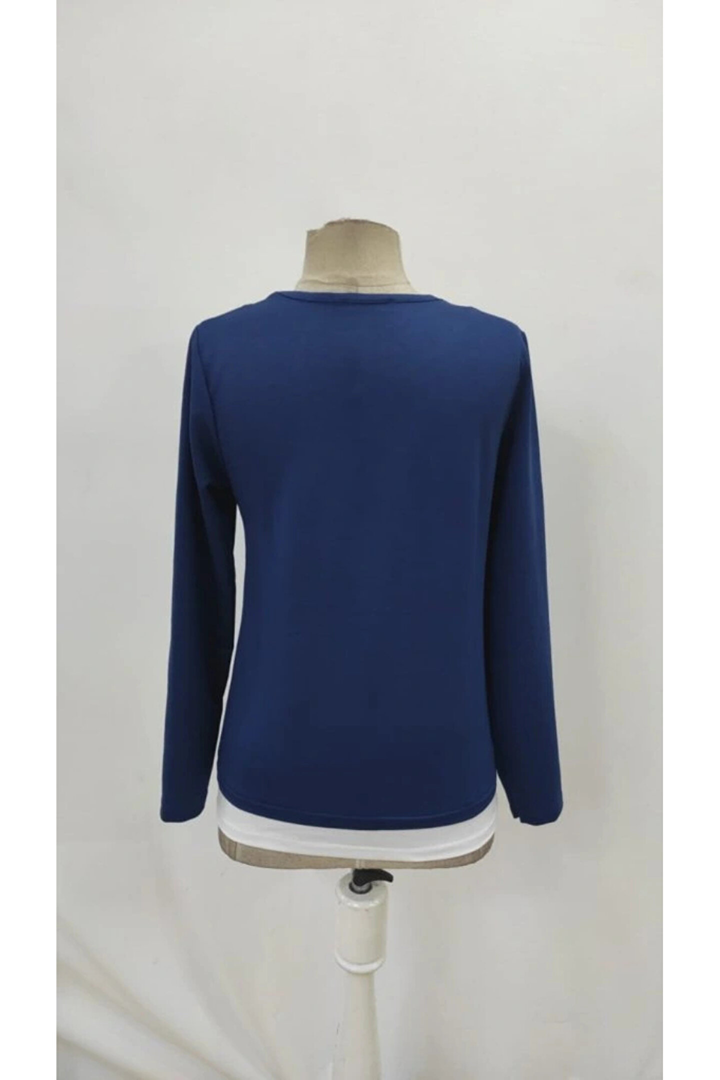 Kadın Uzun Kollu V Yakalı çift Renkli Viskon Iki Iplik Bluz