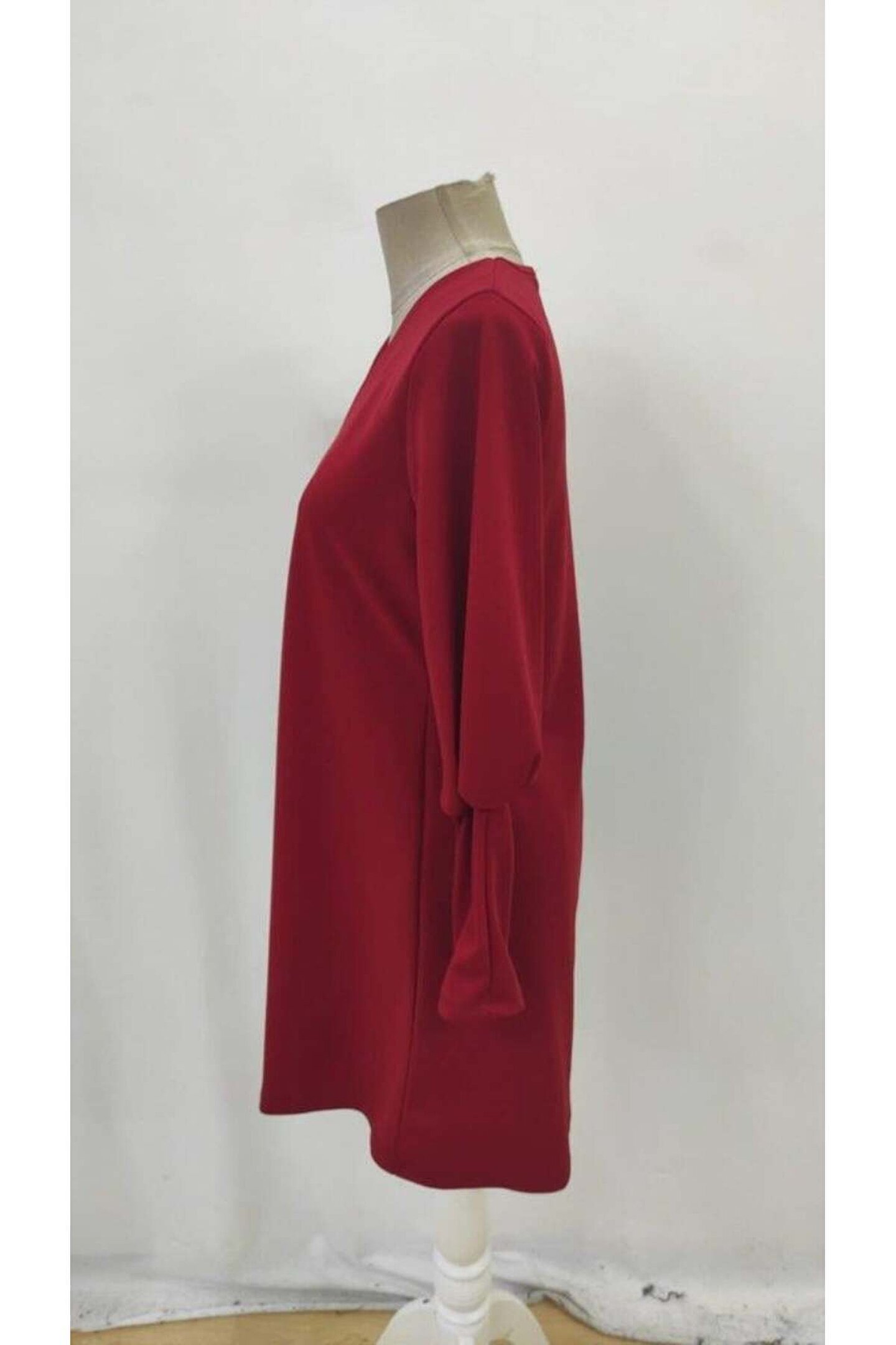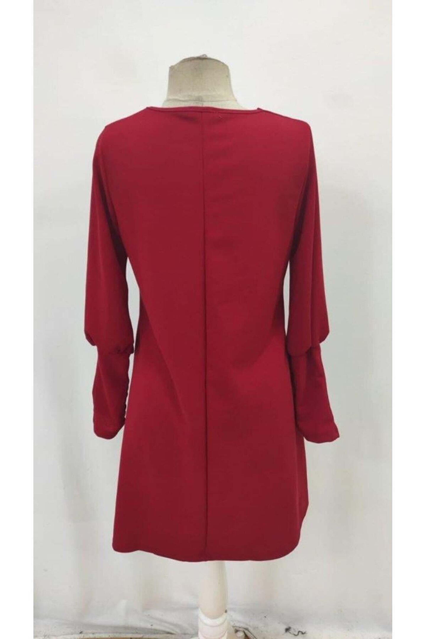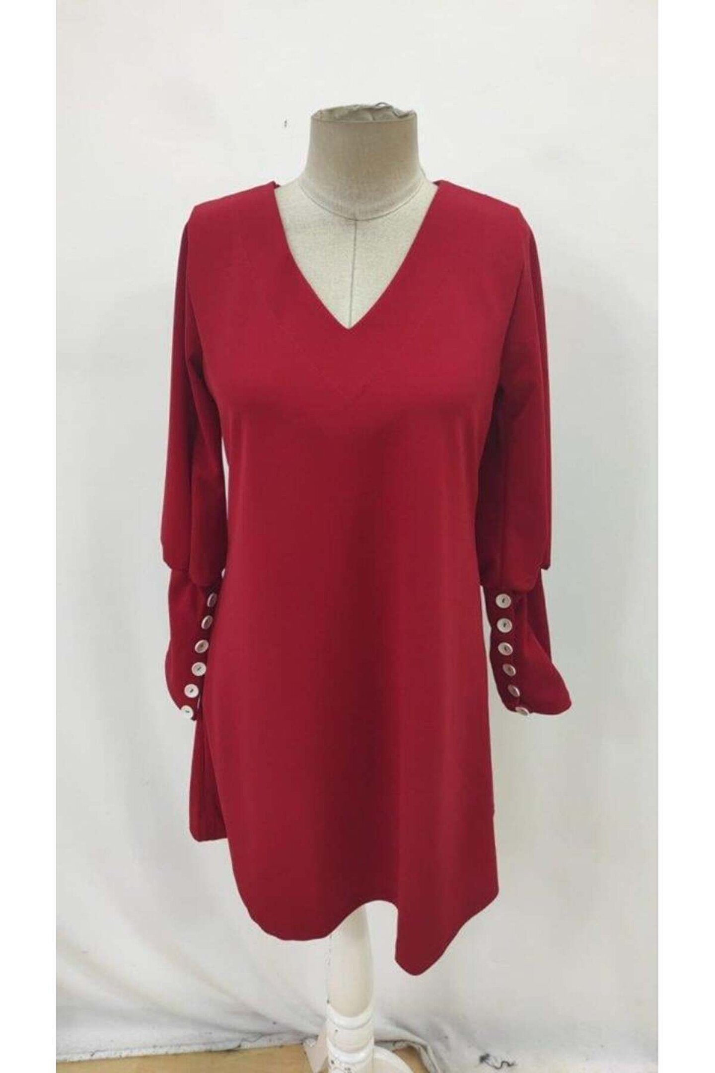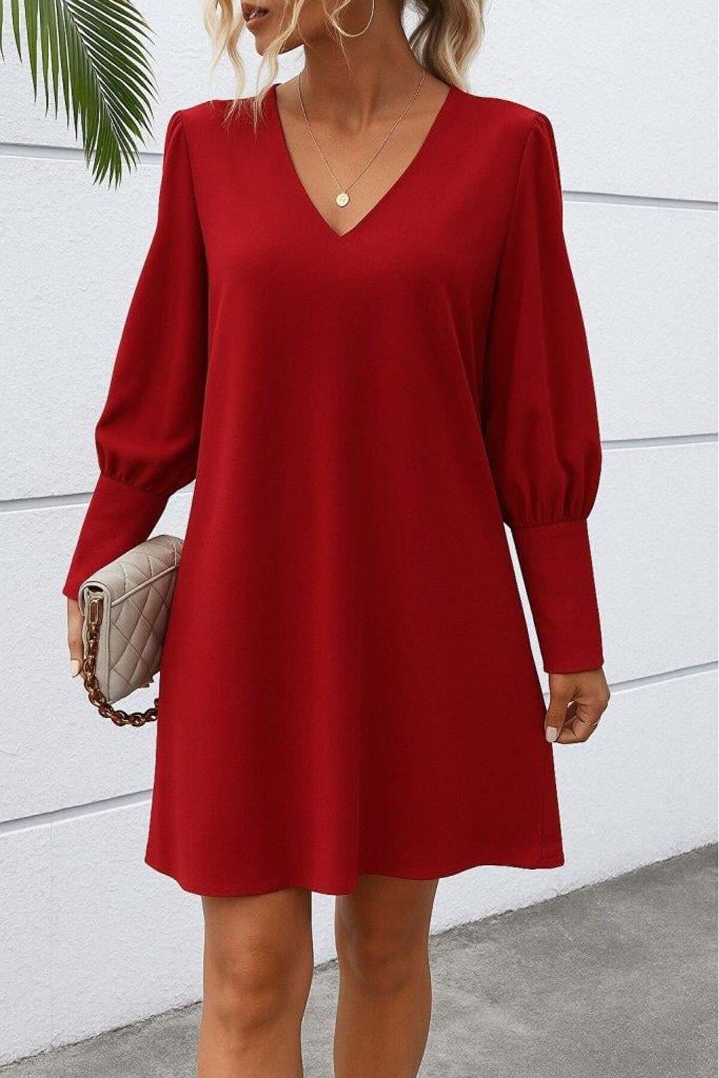 Kadın Uzun Kollu V Yakalı Kısa Ithal Krep Elbise