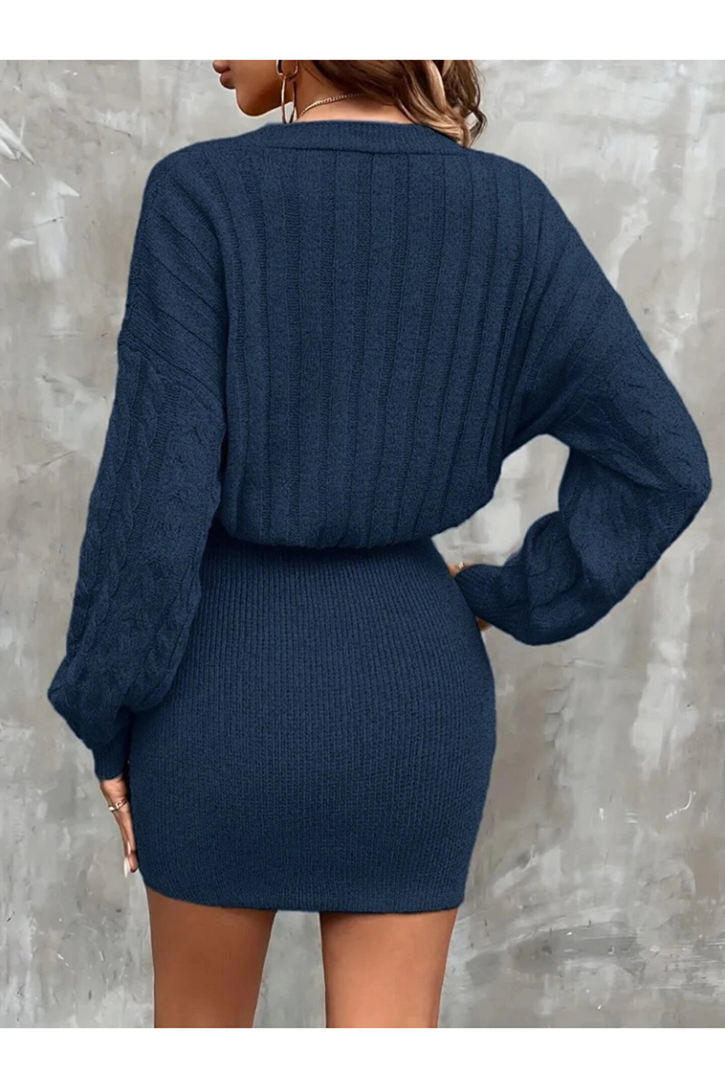 Kadın Uzun Kollu V Yakalı önden Düğmeli Kısa Triko Elbise