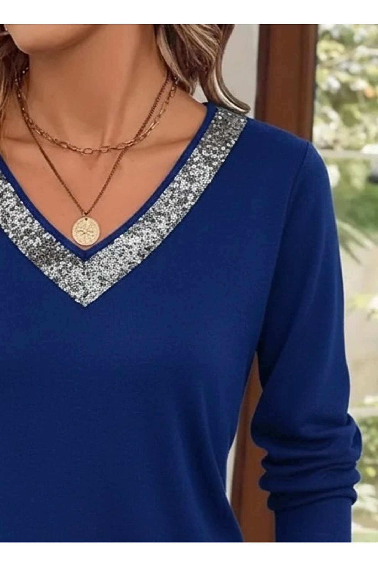 Kadın Uzun Kollu V Yakalı Viskon Bluz