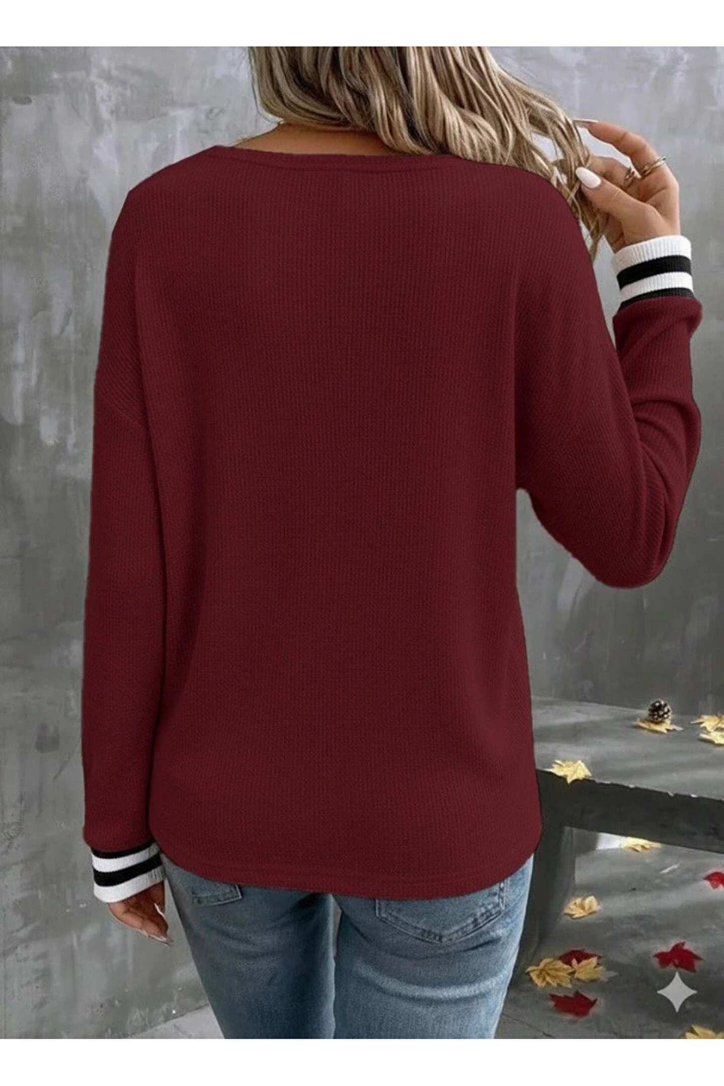 Kadın Uzun Kollu V Yakalı Waffle Bluz
