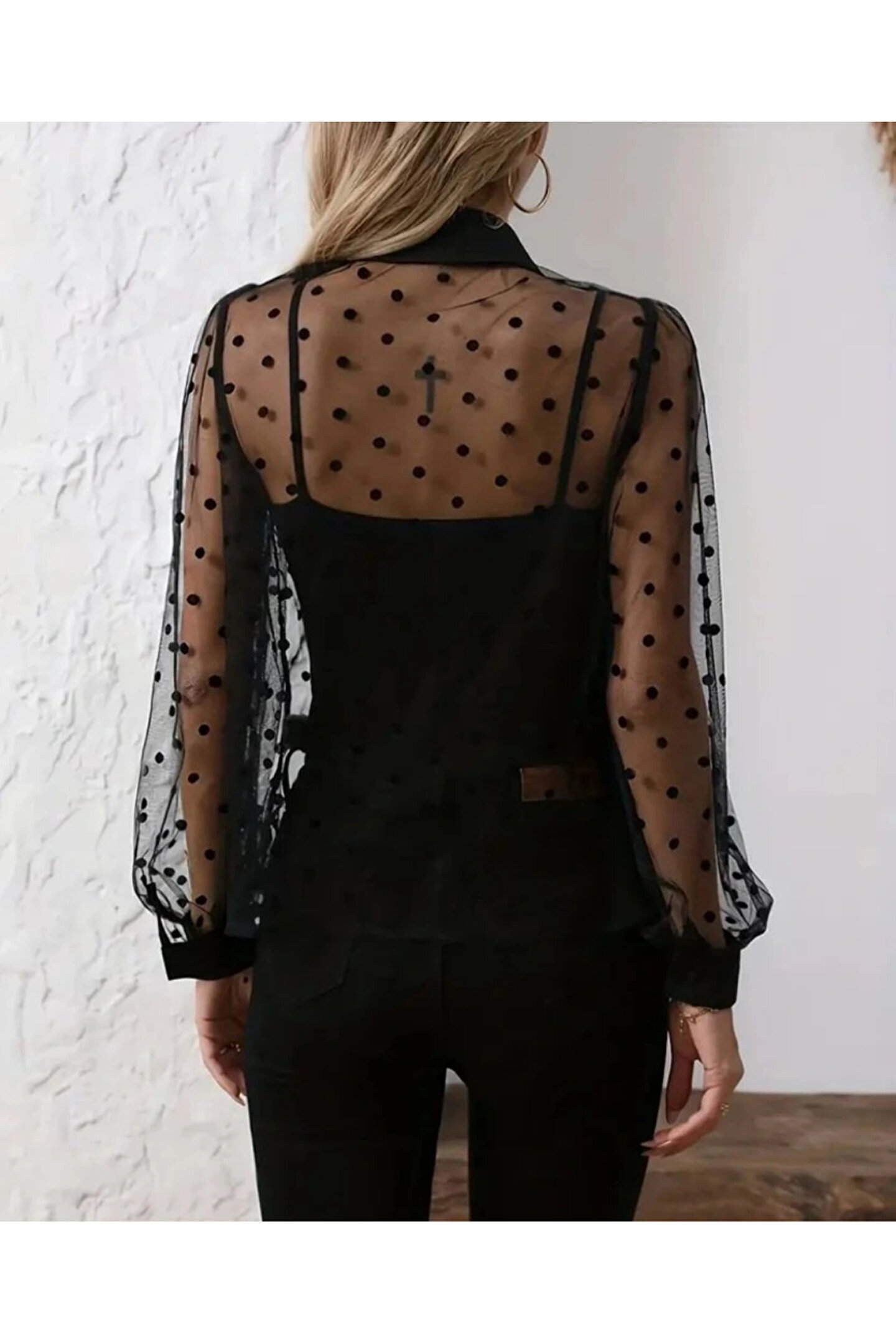 Silerra Kadın Uzun Kollu Yakalı şeffaf Tül Detaylı Ve Viskon Atlet Ikili Takım