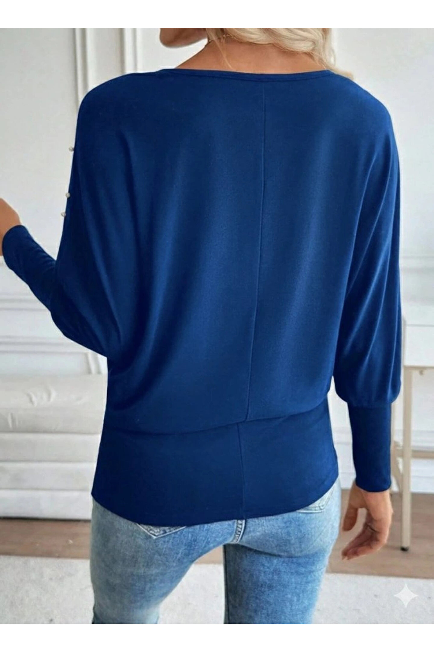 Kadın Uzun Kollu Yuvarlak Yaka Incili Viskon Bluz
