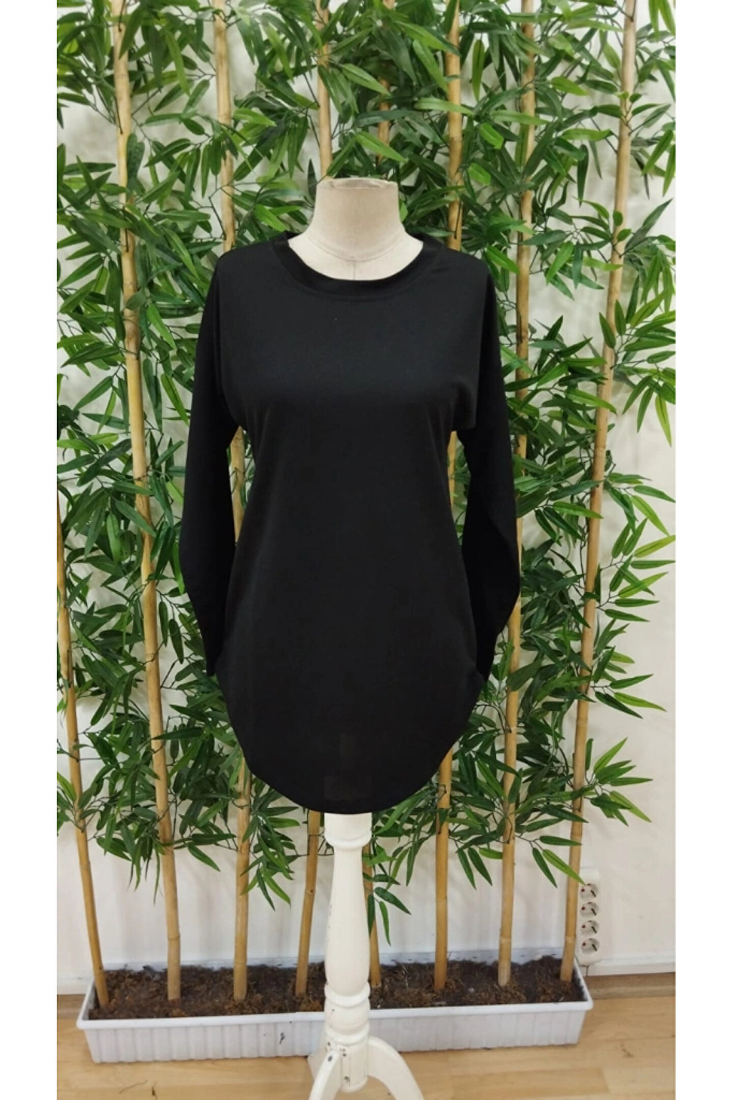 Kadın Uzun Kollu Yuvarlak Yaka Salaş Iki Iplik Bluz