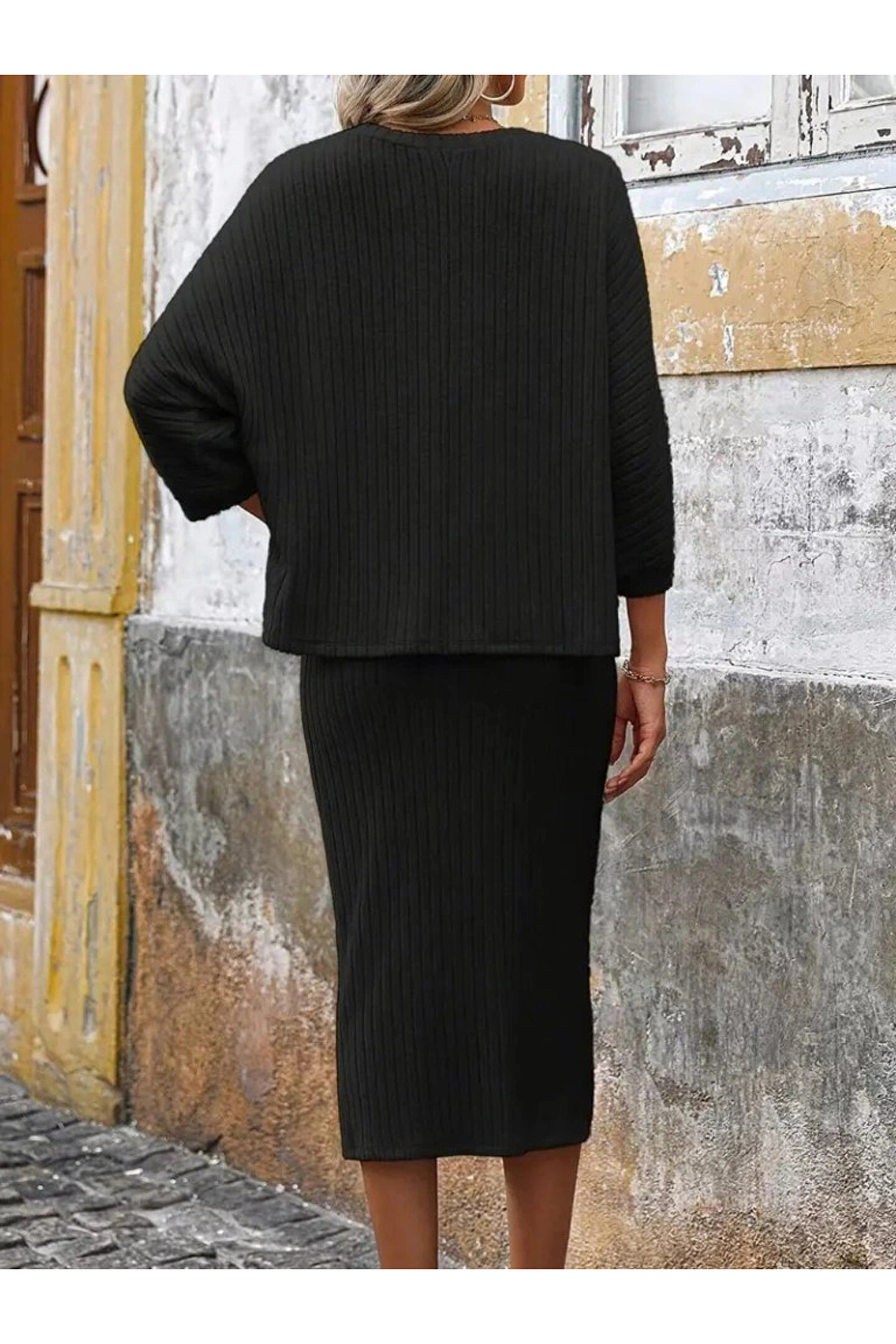 Kadın Uzun Kollu Yuvarlak Yakalı şardonlu Kaşkorse Bluz Ve Etek Ikili Takım