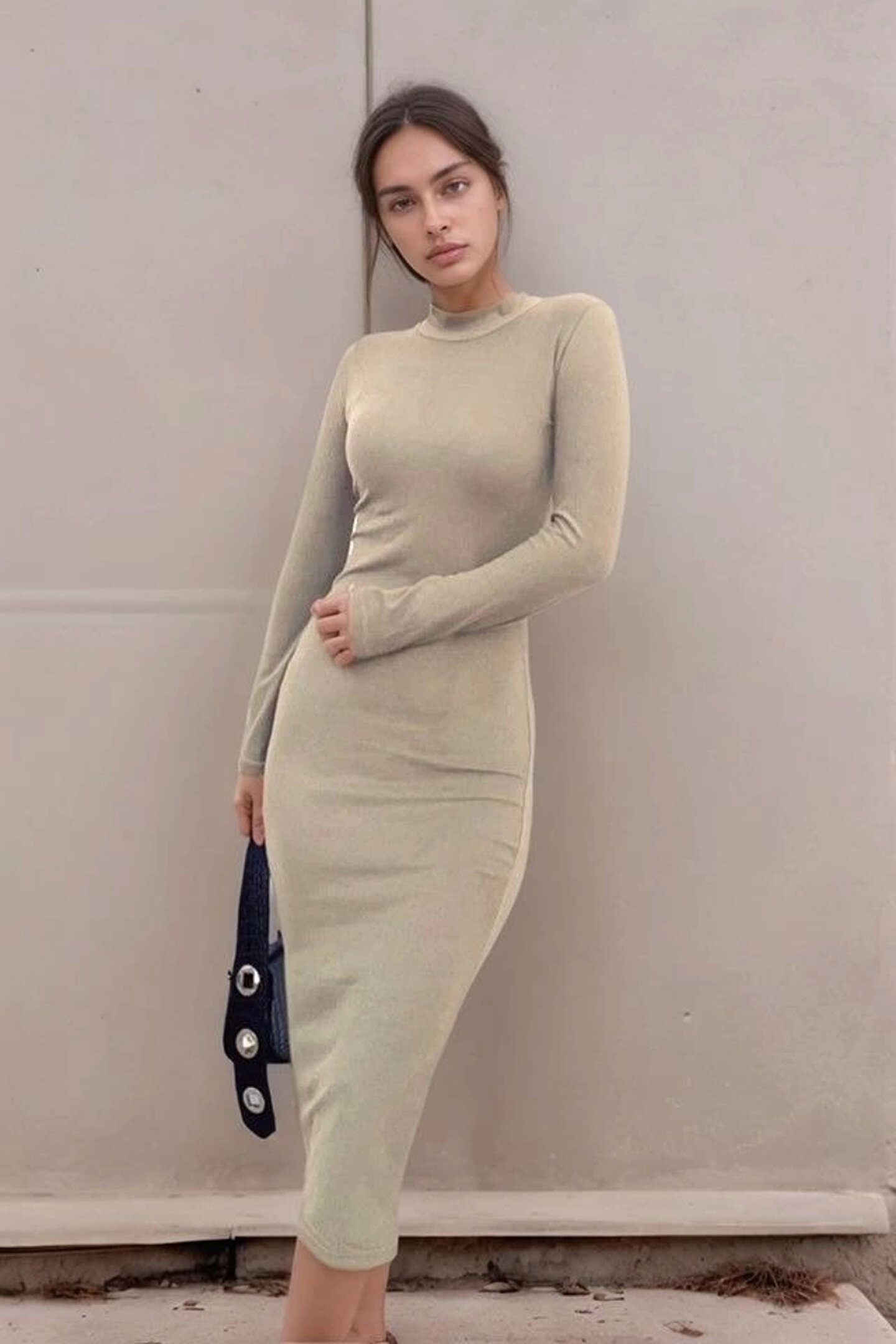 Kadın Yarım Balıkçı Yaka Süet Kumaş Fırsat ürün Midi Boy Elbise
