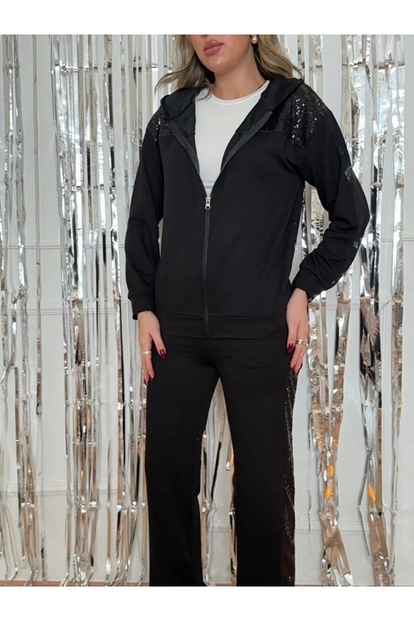 Kadın Yılbaşı özel Iki Iplik Kumaş Pul Ve Fermuar Detaylı Ikili Takım