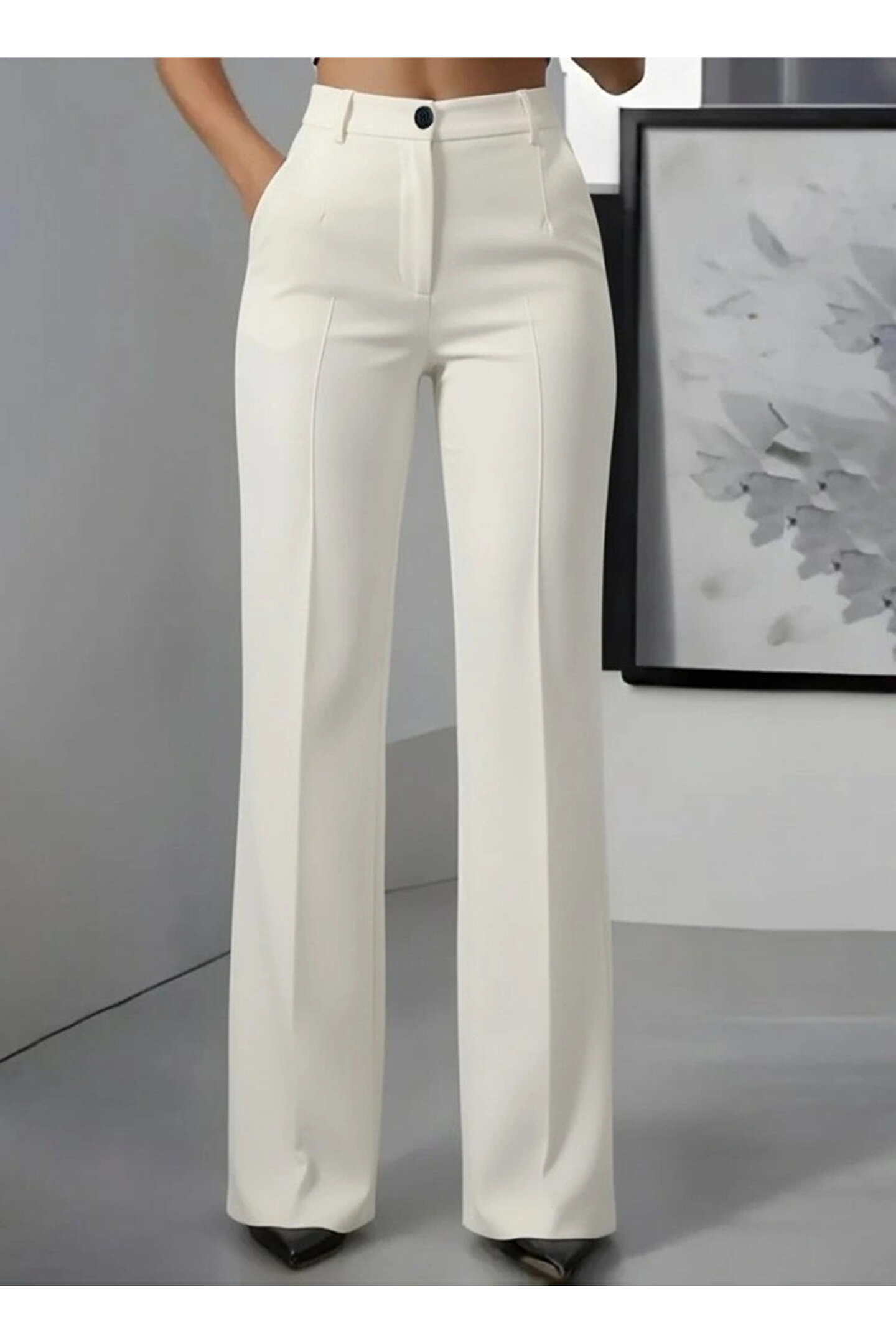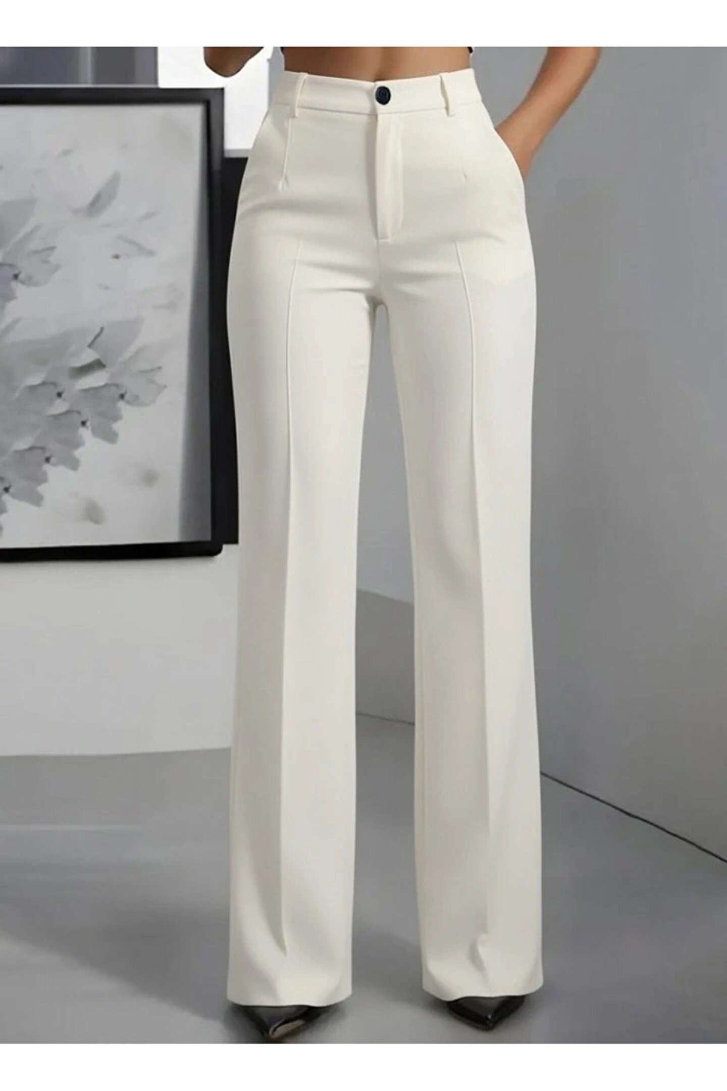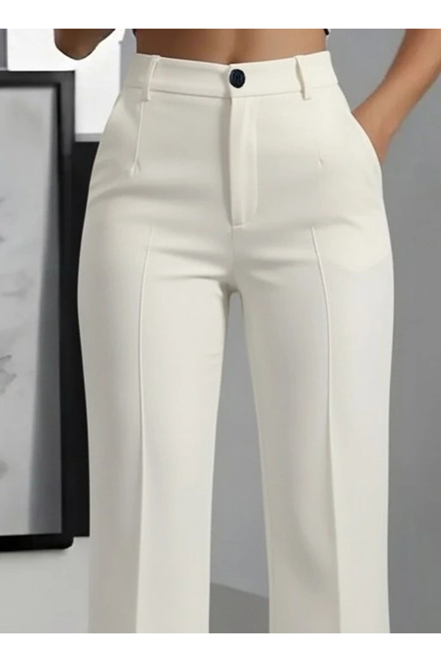 Kadın Yüksek Bel Cepli Ithal Krep Pantolon