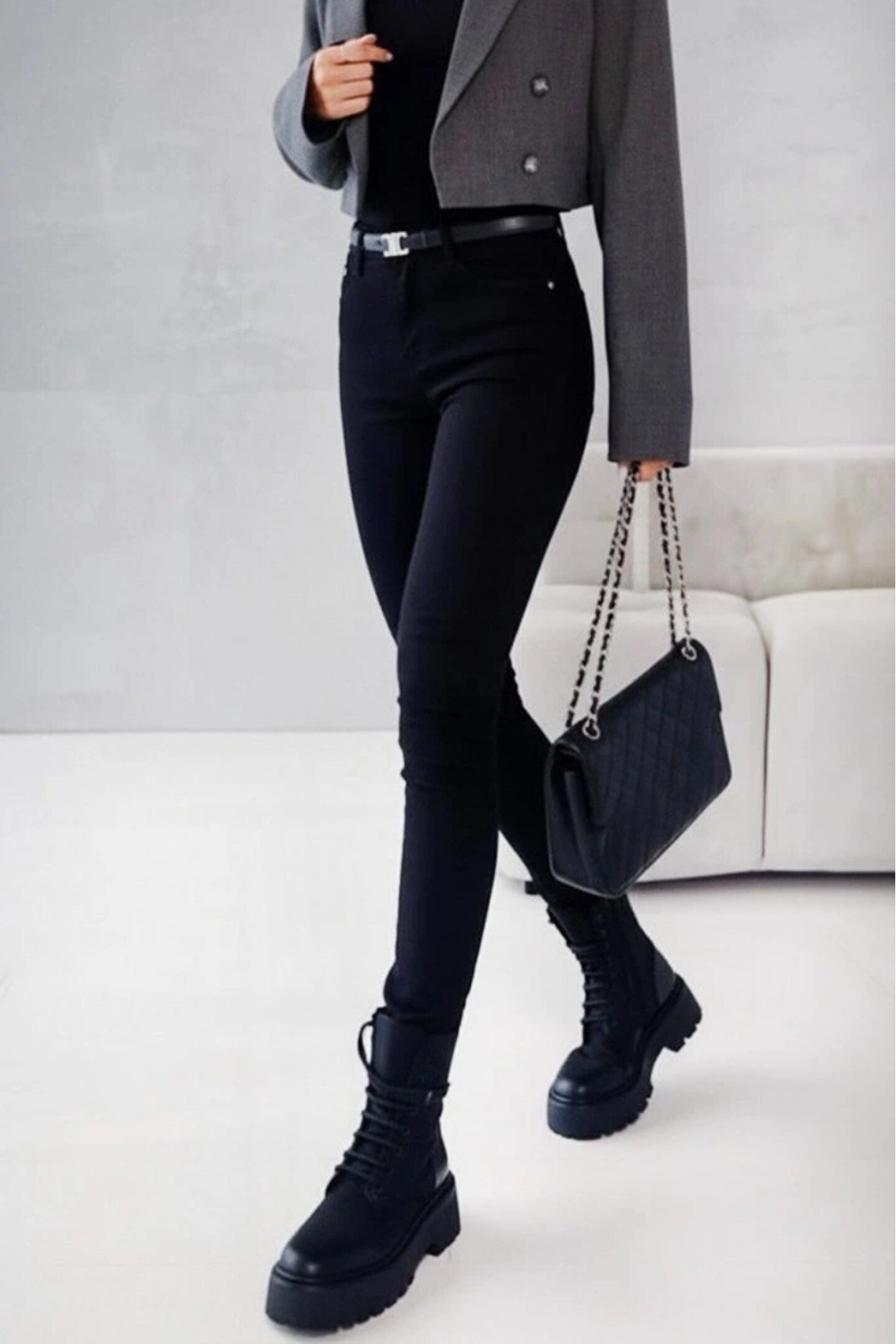 Kadın Yüksek Bel Cepli Kemersiz Kot Pantolon