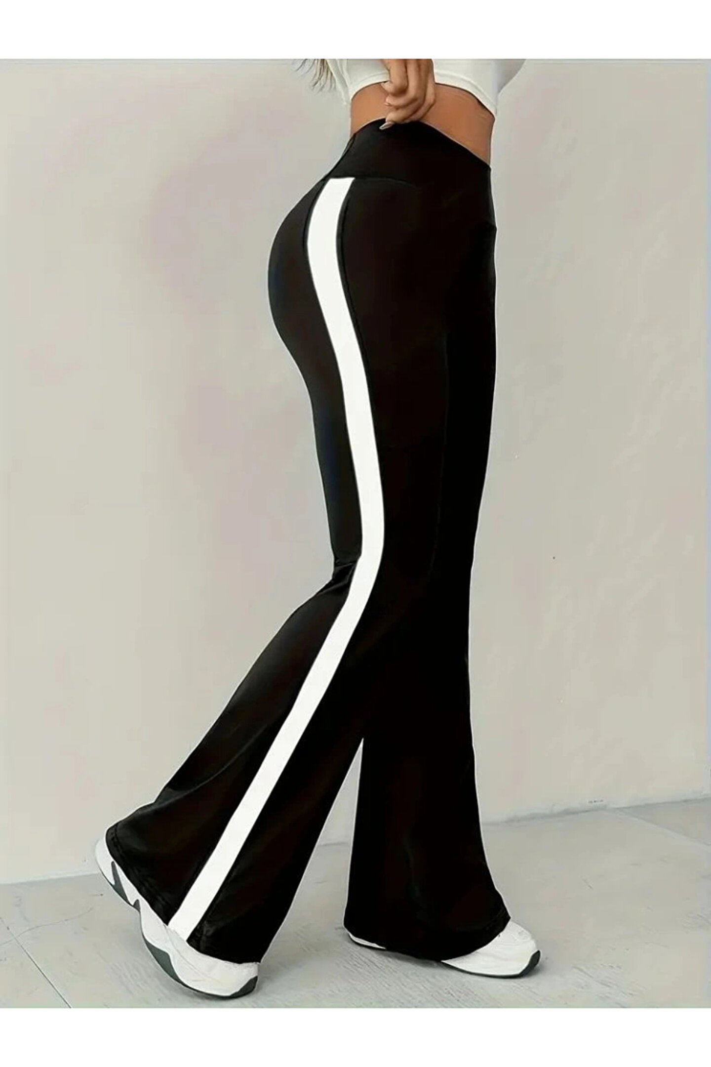 Kadın Yüksek Bel İspanyol Paçalı Yanlardan şerit Detaylı Dalgıç Tayt Pantolon
