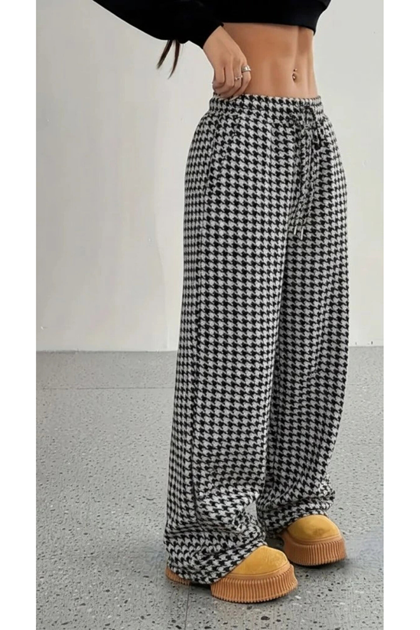 Kadın Yüksek Bel Lastikli Bağcıklı Geniş Kesim Kazayağı Dalgıç Pantolon