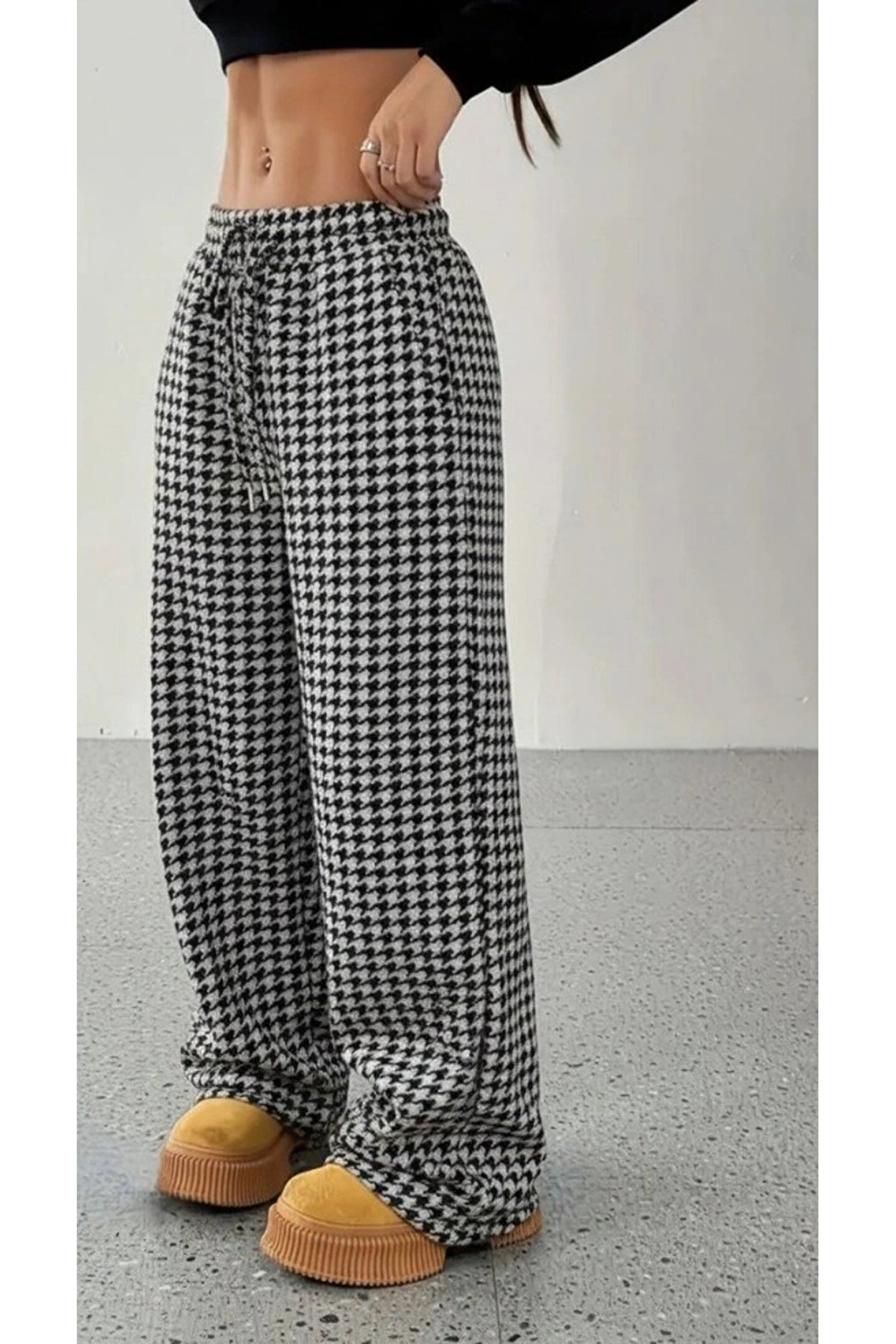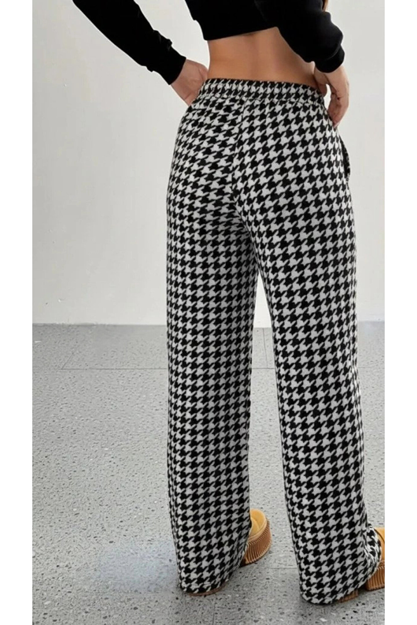 Kadın Yüksek Bel Lastikli Bağcıklı Geniş Kesim Kazayağı Dalgıç Pantolon