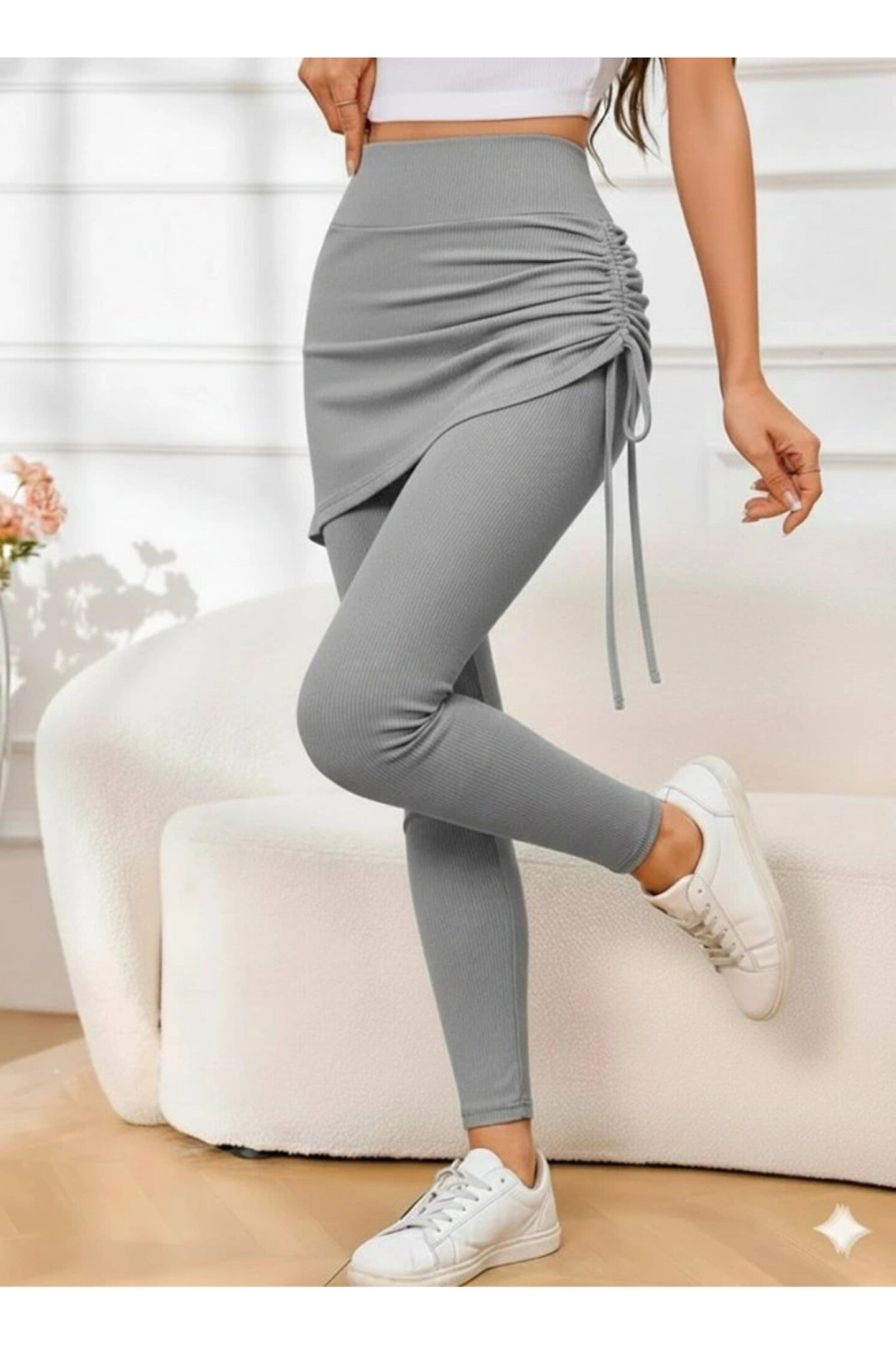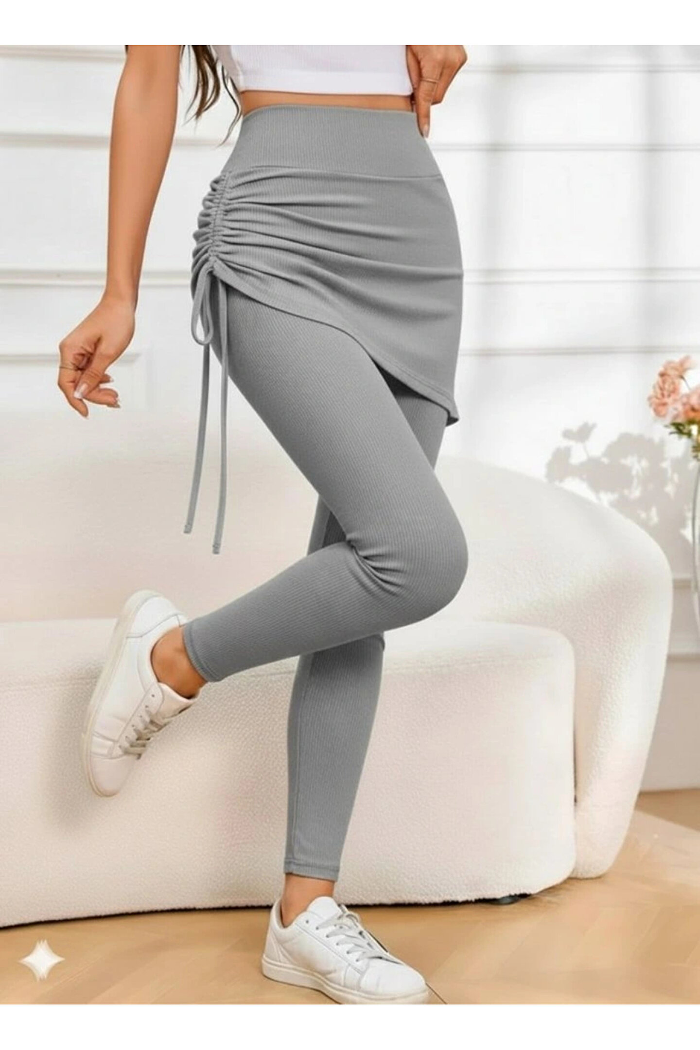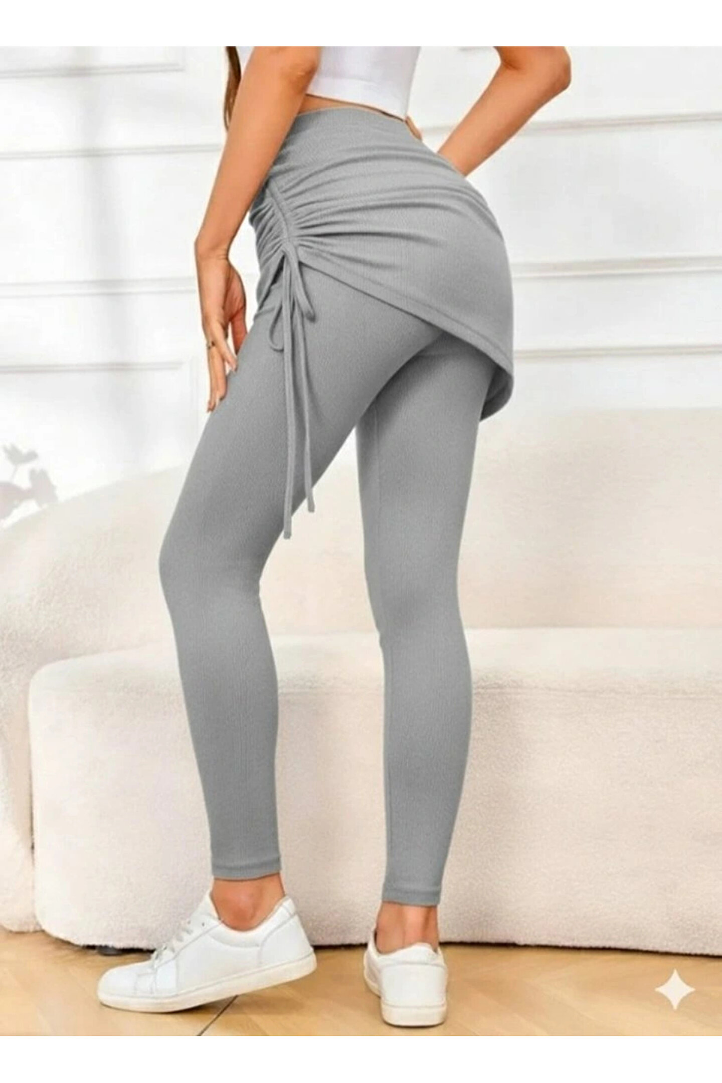 Silerra Kadın Yüksek Bel Yandan Büzgülü Alttan Uzun Kaşkorse Tayt Etek
