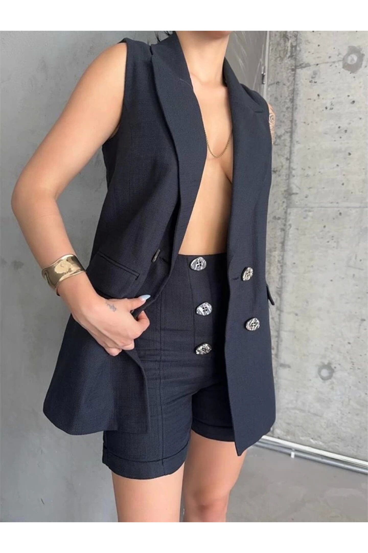 KETEN YELEK - ŞORT TAKIM - Siyah