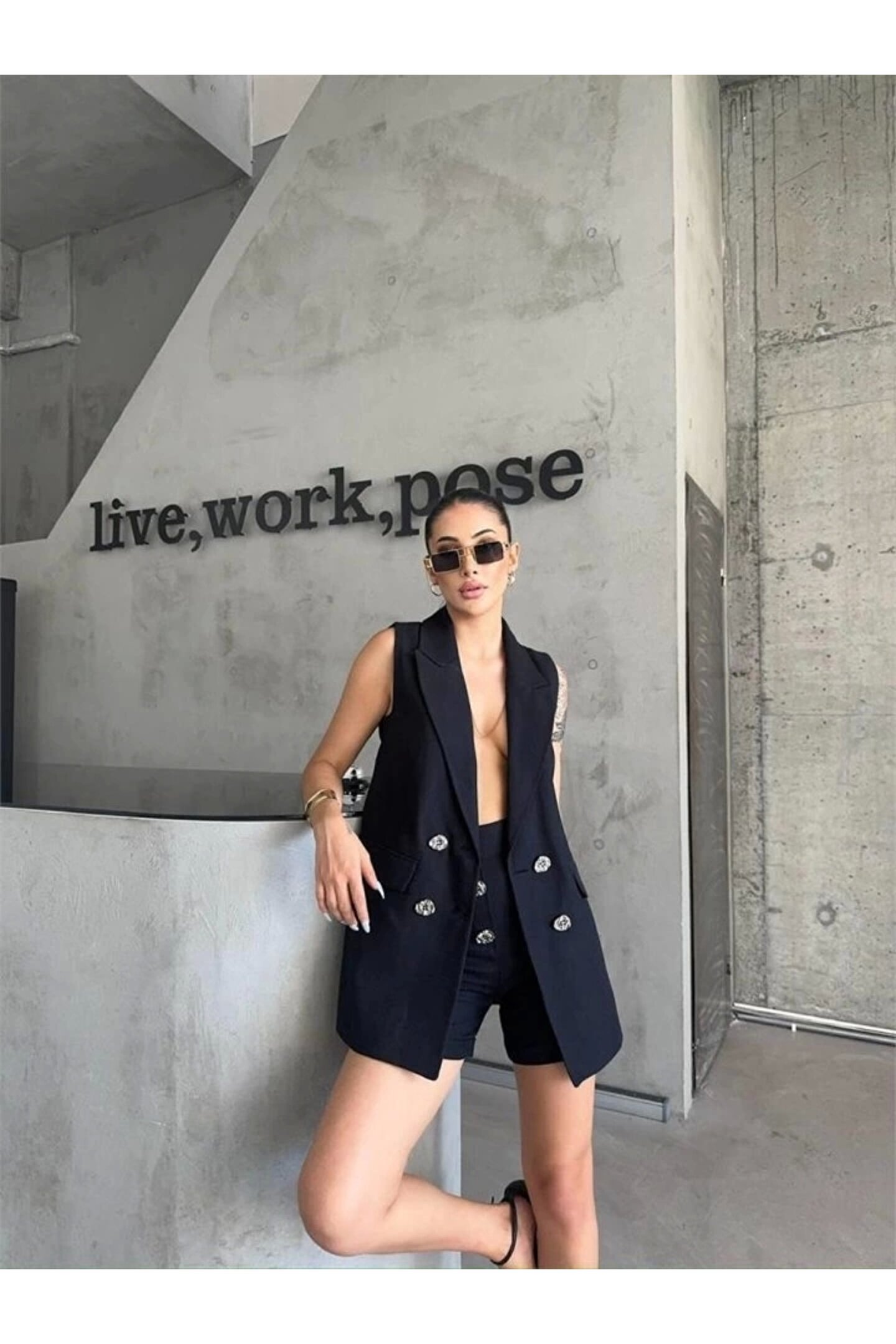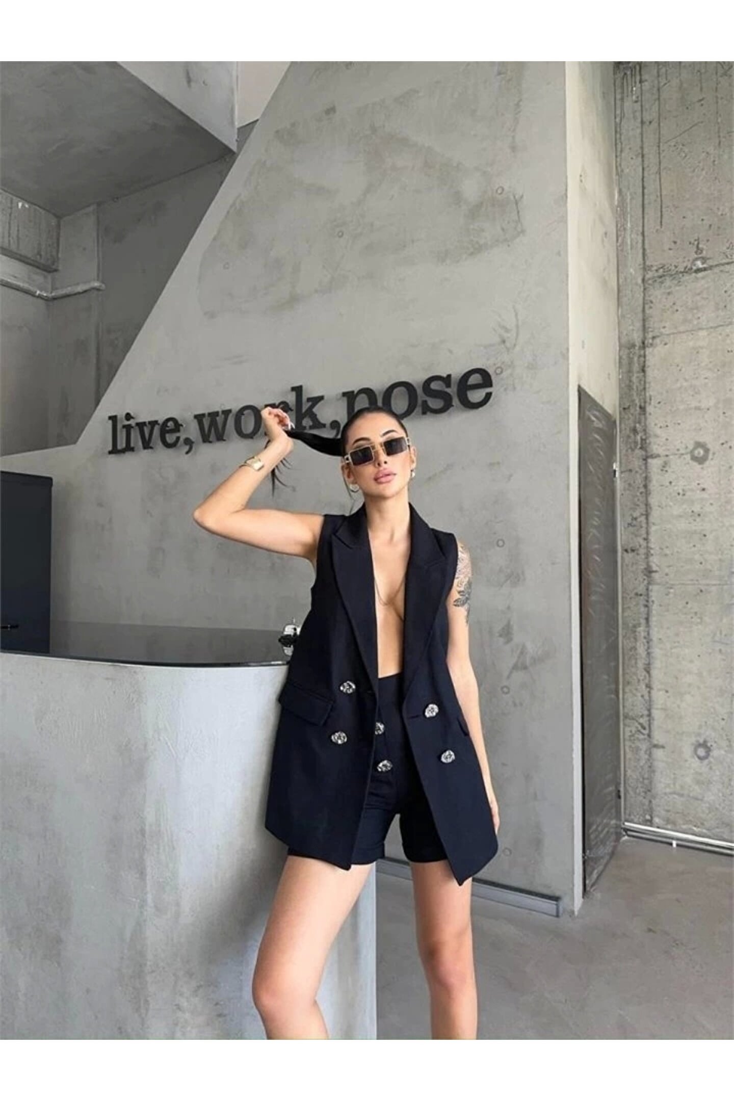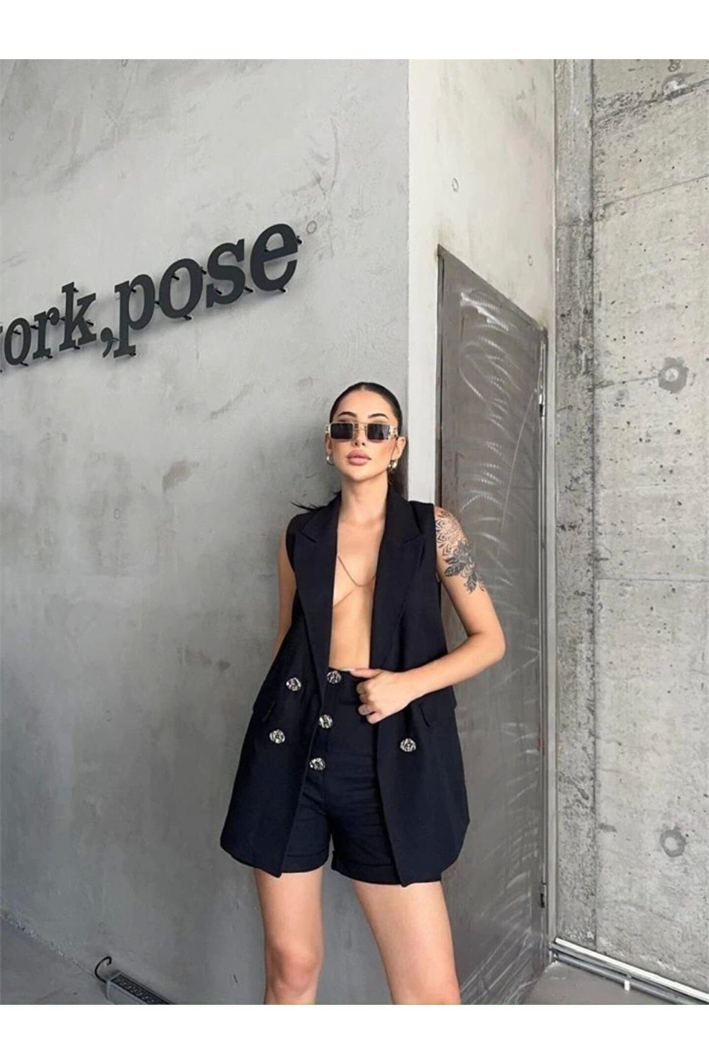 KETEN YELEK - ŞORT TAKIM - Siyah