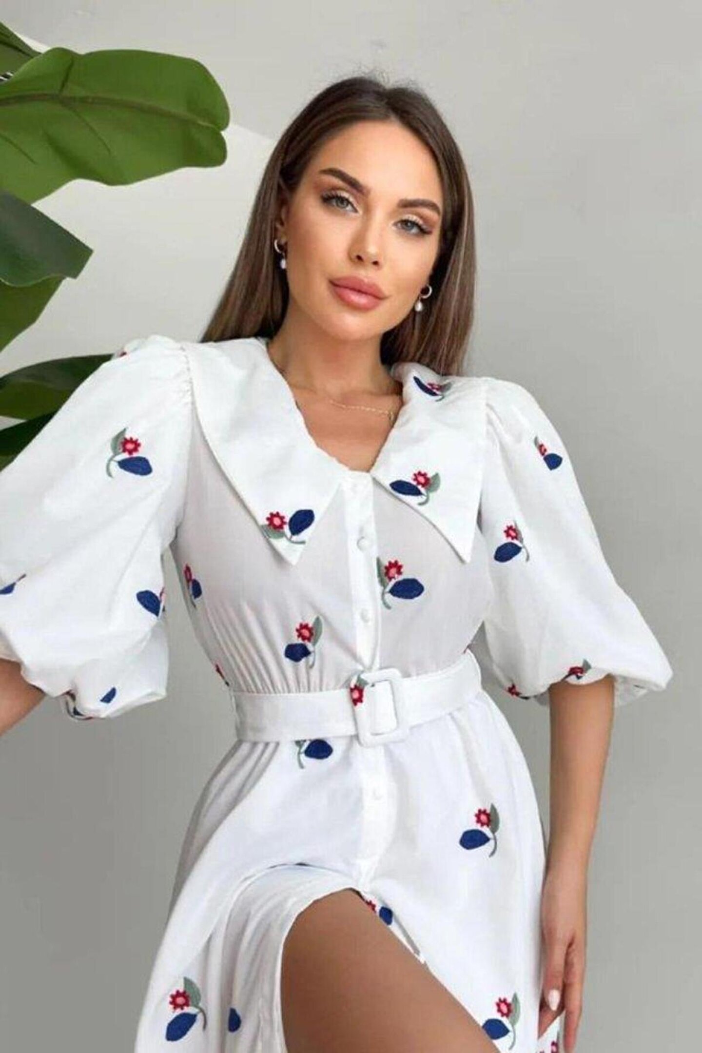 Kırmızı Yakası Çiçek Motifli Kemerli Elbise.; Ürün detayları ve kullanım hissi kişisel tercihlere göre değişiklik gösterebilir.