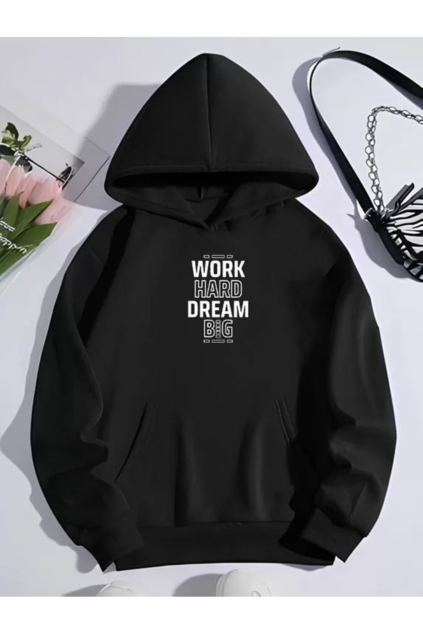 Kışlık Üç İplik Kapşonlu SweatShirt - Siyah