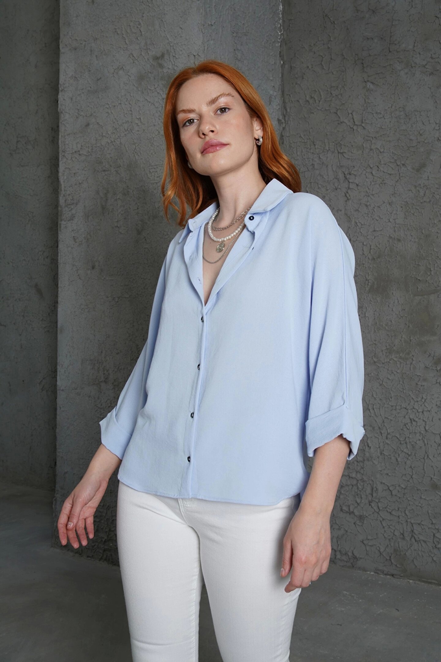 Kol Katlama Detaylı Bebe Mavi Gömlek